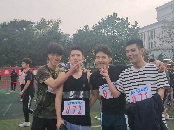 (从左到右19级日语2班韩仕勋,18级日语2班杨嘉俊,20阿语2班杨孙逸,18级阿语2班钱子豪)