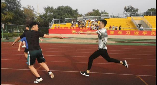 一根小小的木棒,连接起了四个人团结一致的心,在烈日下奔跑的运动健儿们都最大程度地迈开自己的步伐,与疾风赛跑。