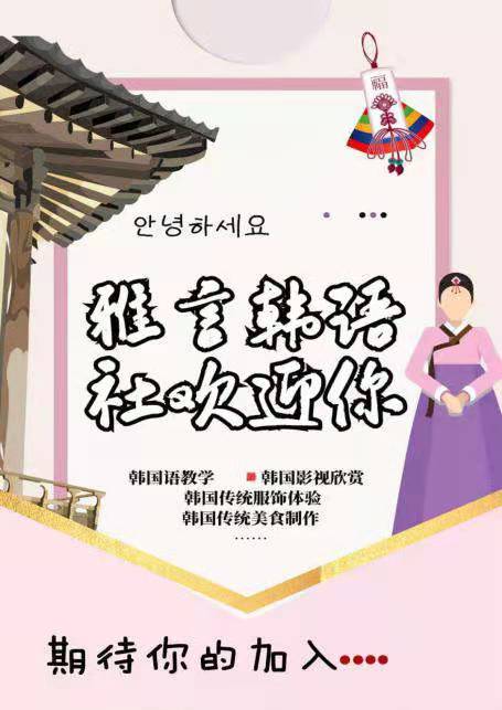 雅言韩语社是为了帮助同学们学习韩国语言,宣传韩国文化和促进中韩友谊发展,而成立的社团。
