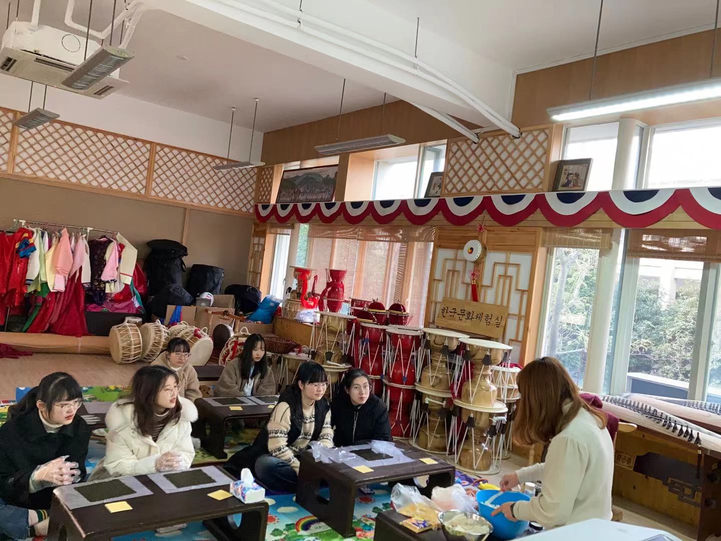 娱乐文化方面我们会做韩国的传统美食,播放韩国影视娱乐节目、相关讲座、讨论会等。当然也会教授韩国的礼节、韩国的民俗风情、韩国服饰、韩国的地理旅游等。