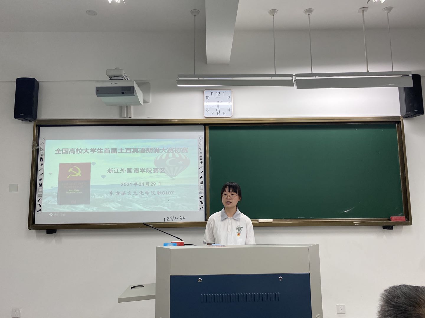 参赛选手们逐个上台朗诵,赢得了台下同学们的掌声。本次朗诵比赛,选手们在朗诵时既需要把握好土耳其语发音的准确性、语音语调及停顿,还需要在朗诵时注入情感,注意与评委及观众的交流,对各位选手都很有挑战性,但选手们的表现都可圈可点,让人眼前一亮。