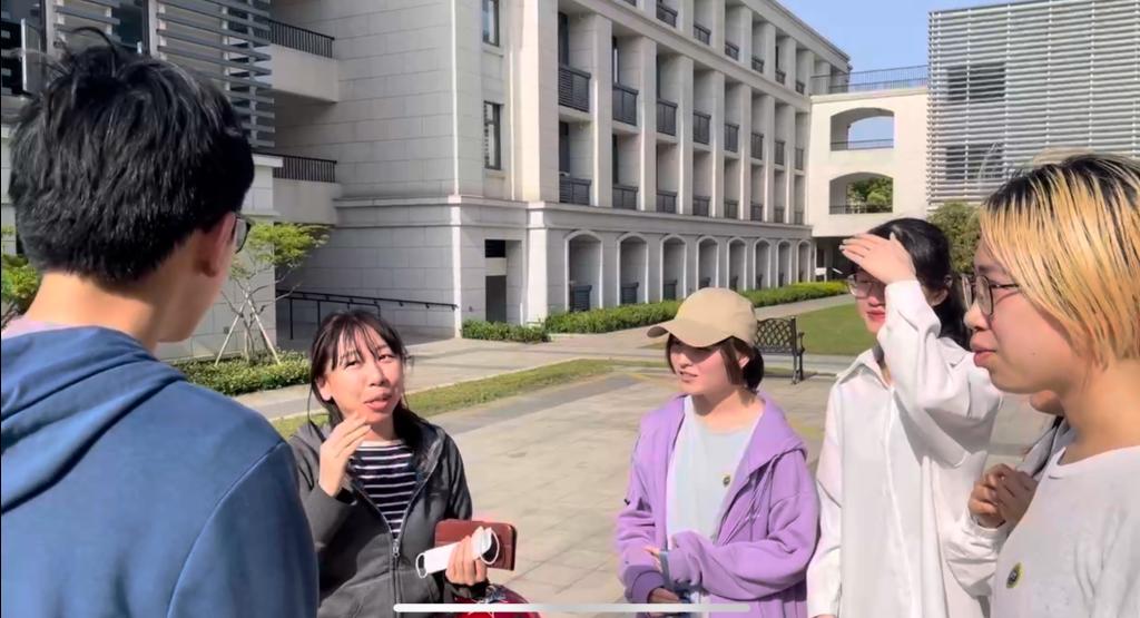 第一期活动交流时间持续一个半小时,氛围轻松、愉悦,同学们兴趣盎然、反响热烈!20级日语的鲍晨盈同学说:“这次活动我们特别期待,主动报名后就加入了微信群,前期和老师们一起讨论会徽设计并最终定稿,主动参与并成为活动的一份子感觉特别有意义!第一期活动,和老师、同学们边散步边用日语讲述自己的学校、校园,既锻炼了口语能力,也增进了对学校的热爱” 。