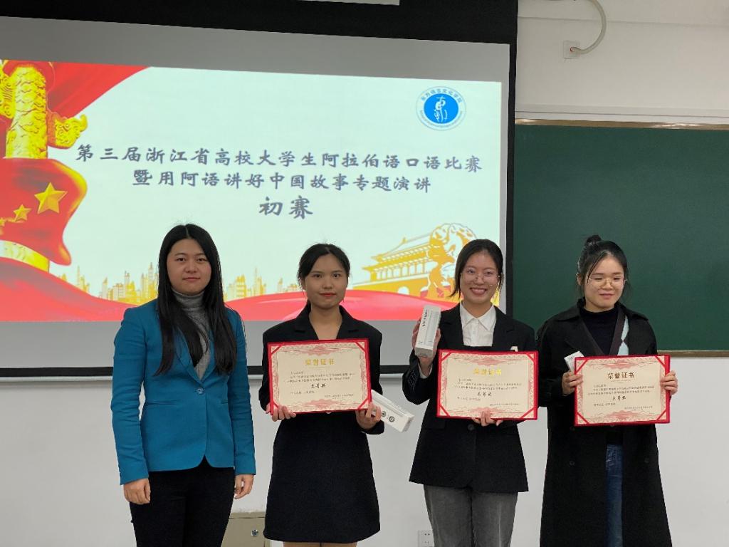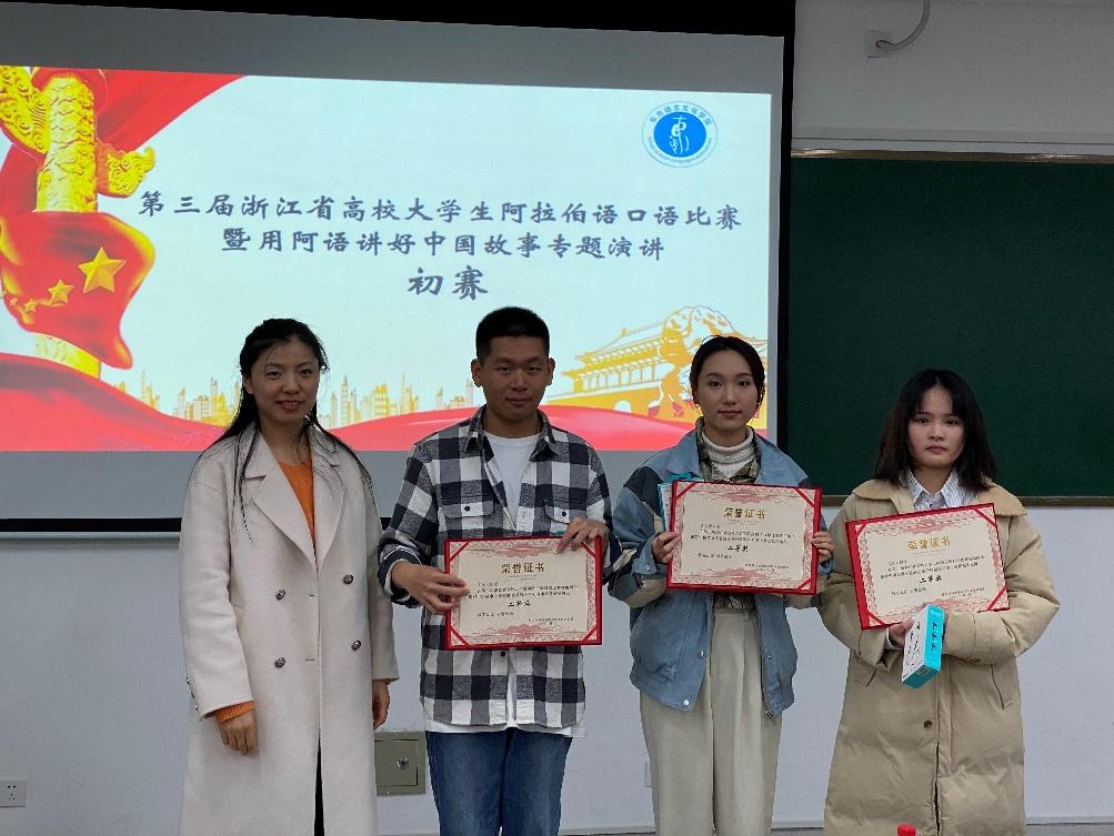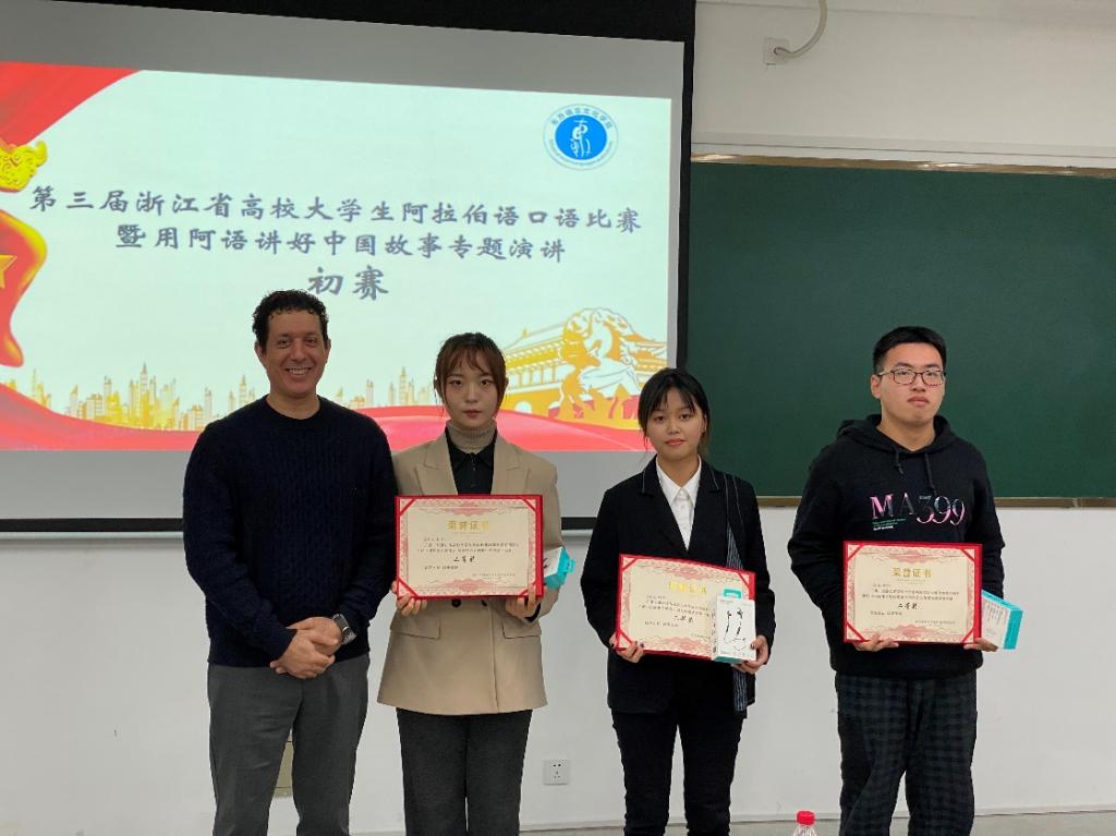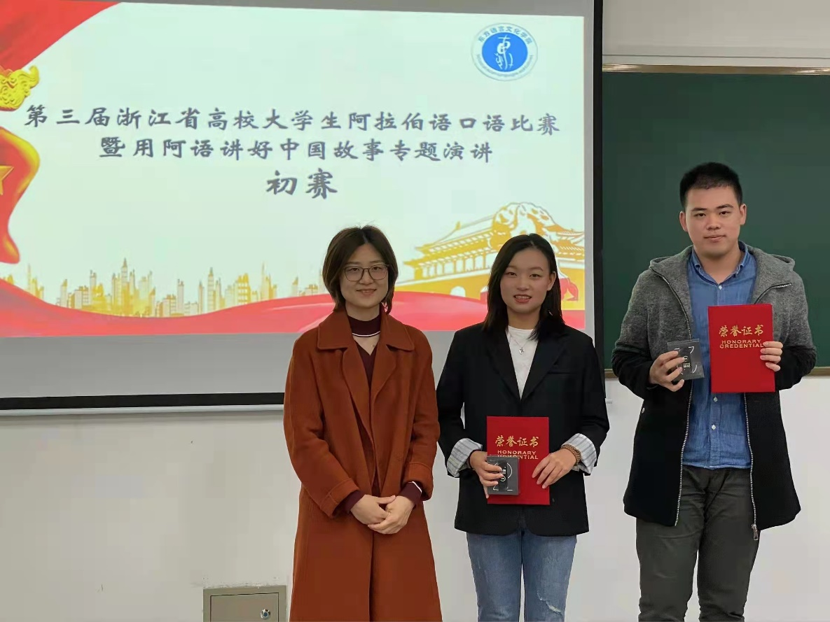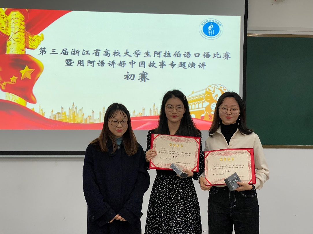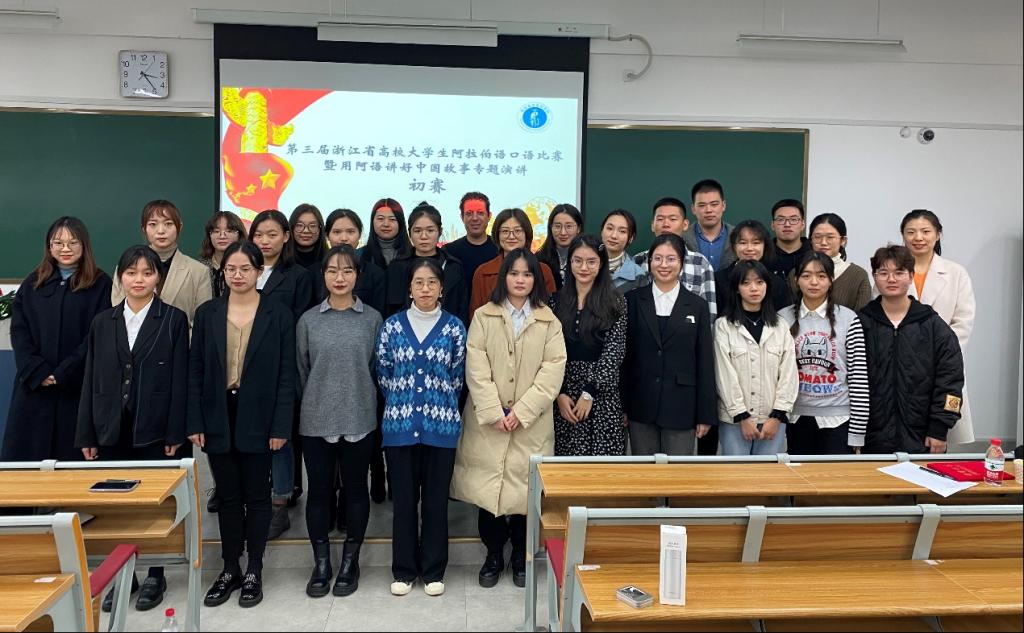 11月11日下午,第三届浙江省大学生阿拉伯语口语比赛暨用阿语讲好中国故事专题演讲浙外阿语系初赛在融B207圆满落幕。比赛分为高低年级两组,低年级演讲主题为“我爱我的祖国——中国”,高年级的演讲主题为“今天,我眼中的中国”和“故事里的中国”。
