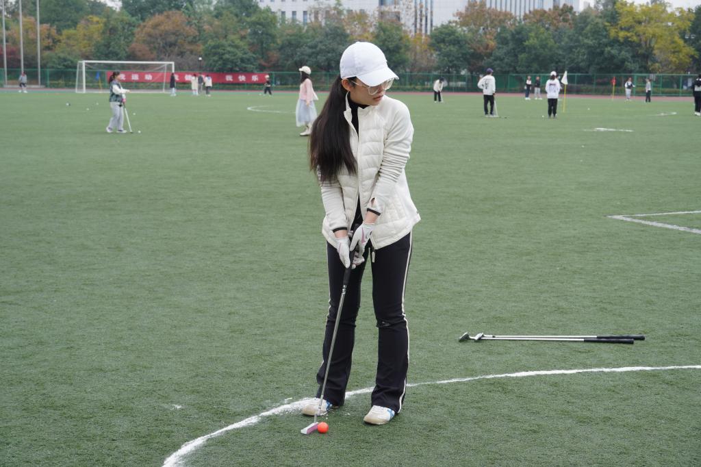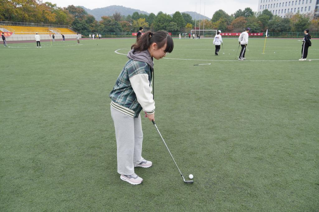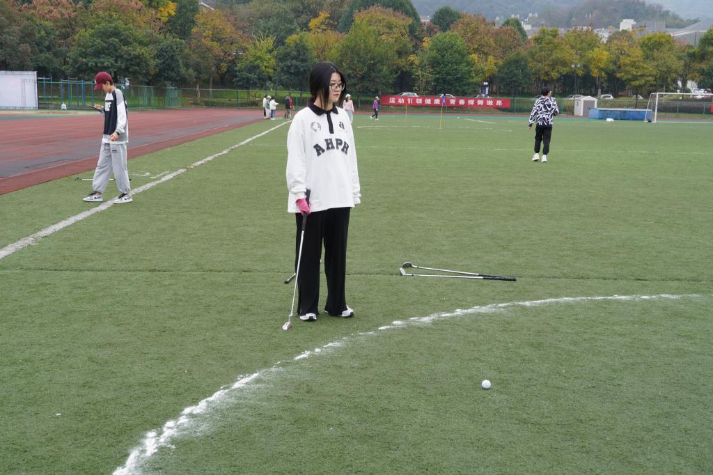 绿草如茵的草坪上,高尔夫九洞赛如期举行。选手们轻轻挥杆,高尔夫球在空中划出一道弧线,然后轻轻推杆,“咚”的一声,球进洞了。