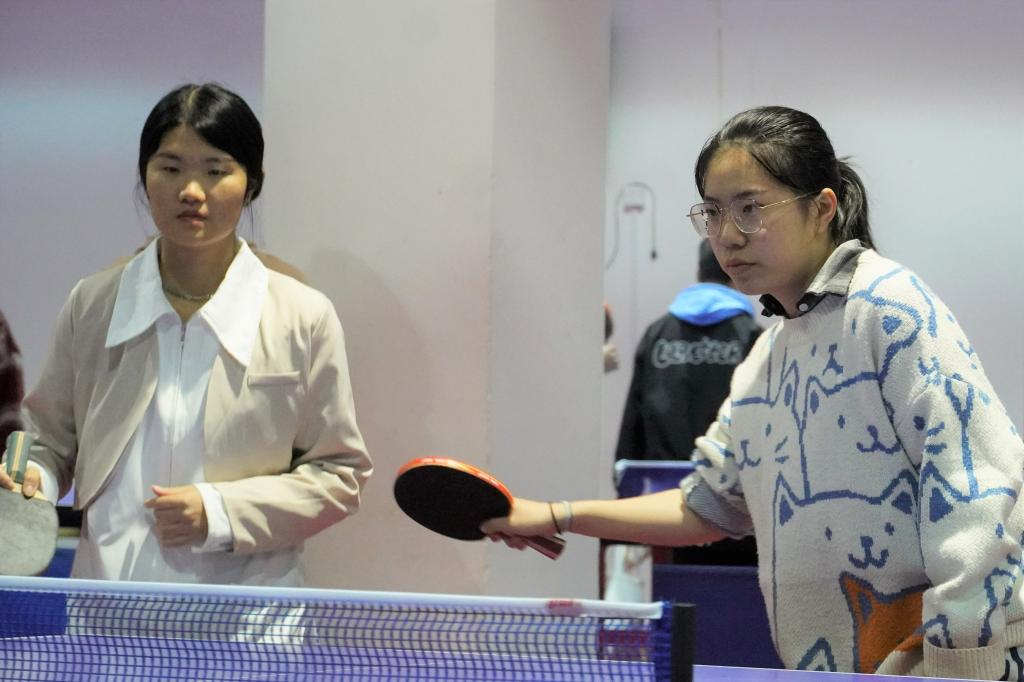 头顶杀球,后场高球,正手搓球,反手搓球。选手们动作敏捷,行云流水,球时而像出膛的炮弹,时而像离弦的箭,时而像天外的流星。