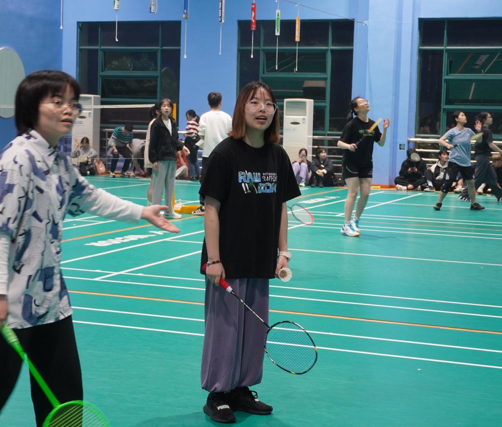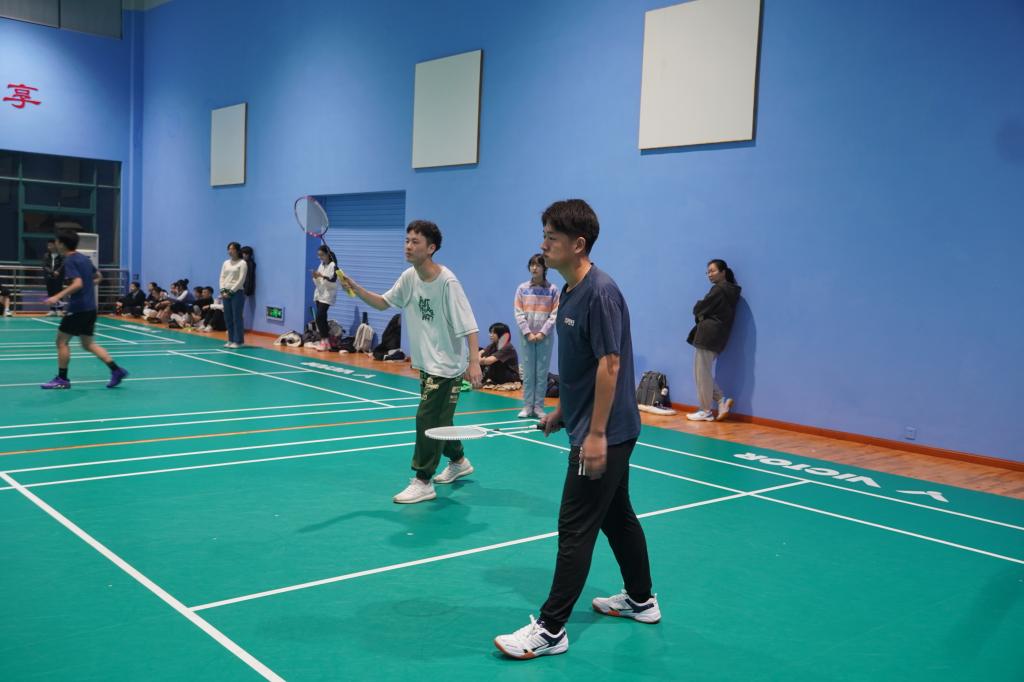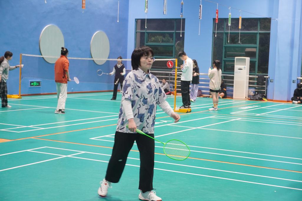 羽球飞扬,谁“羽”争锋。随着主裁的一声哨响,比赛结束。比赛中,球在空中忽上忽下,忽左忽右,划出一道道优美的抛物线。