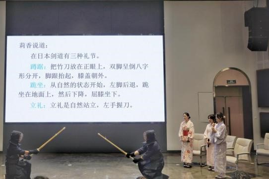大和文化的丰饶与神秘令人心驰神往,21日语3班的同学为我们带来的剑道表演只能用“燿如羿射九日落,矫如群帝骖龙翔。来如雷霆收震怒,罢如江海凝清光”来形容!