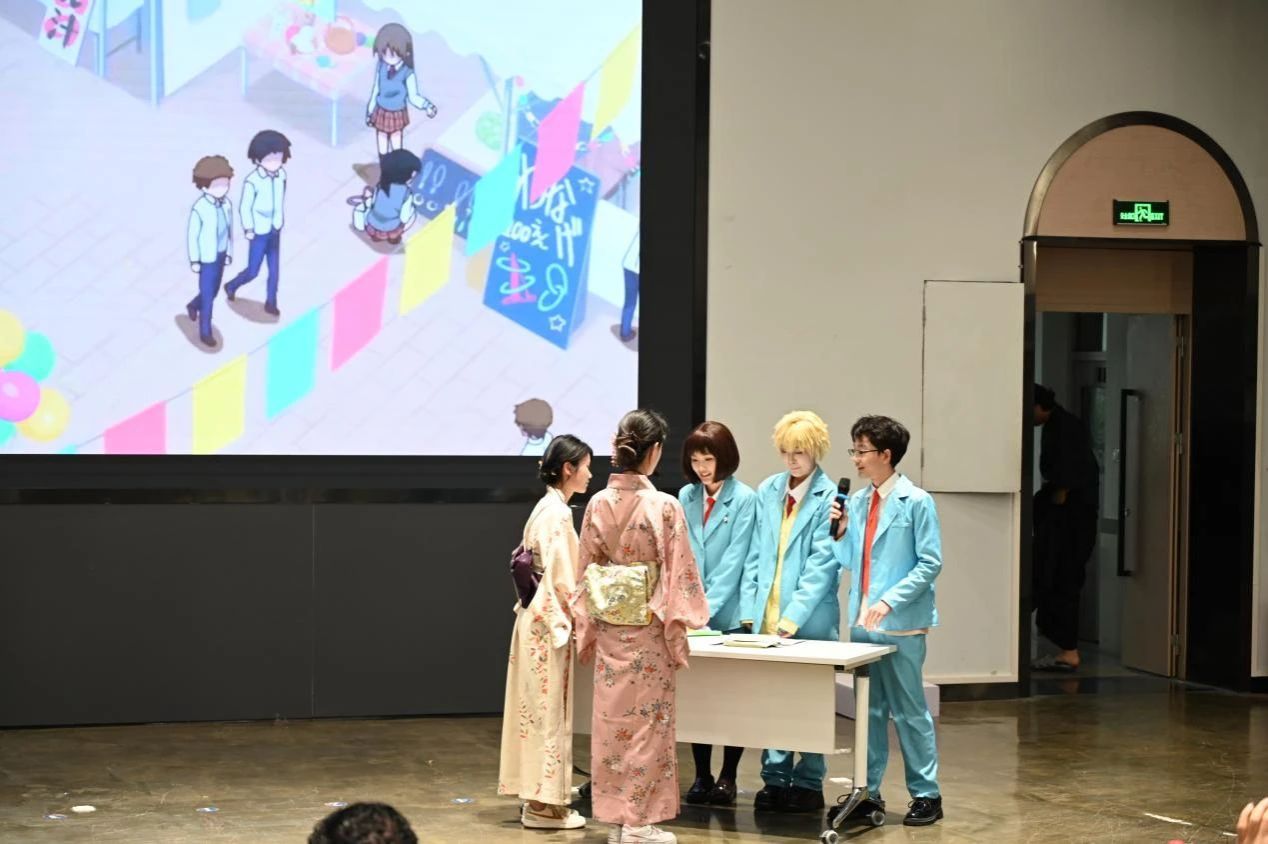 随后是23日语3班为我们带来的情景剧表演《和风纪》。大家跟随着误入时空漩涡的穿越者的脚步,从书道、香道再到歌舞伎文化,最后到动漫文化,感受着日本文化的变迁。