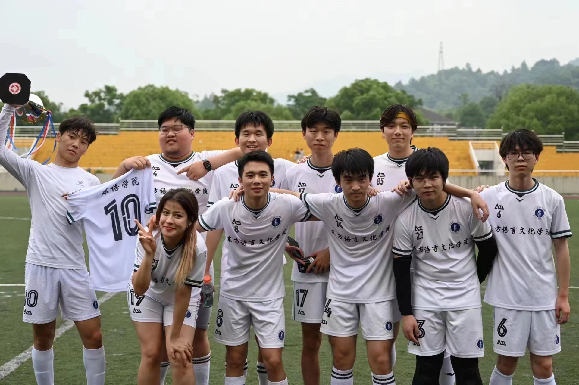 足球队在比赛中斩获第四名。第一场比赛由于艺术学院男足参赛人数不足,原定比赛取消,东语学院获胜。4月25日下午,东语与中文学院展开对垒。伴随一声清脆哨响,绿茵场上的热烈气氛瞬间点燃,少年们紧密配合,灵活攻防,穿梭于场上的每一个角落。同学们擂起战鼓,为足球健儿们加油鼓劲。最终,东语学院战胜中文学院。