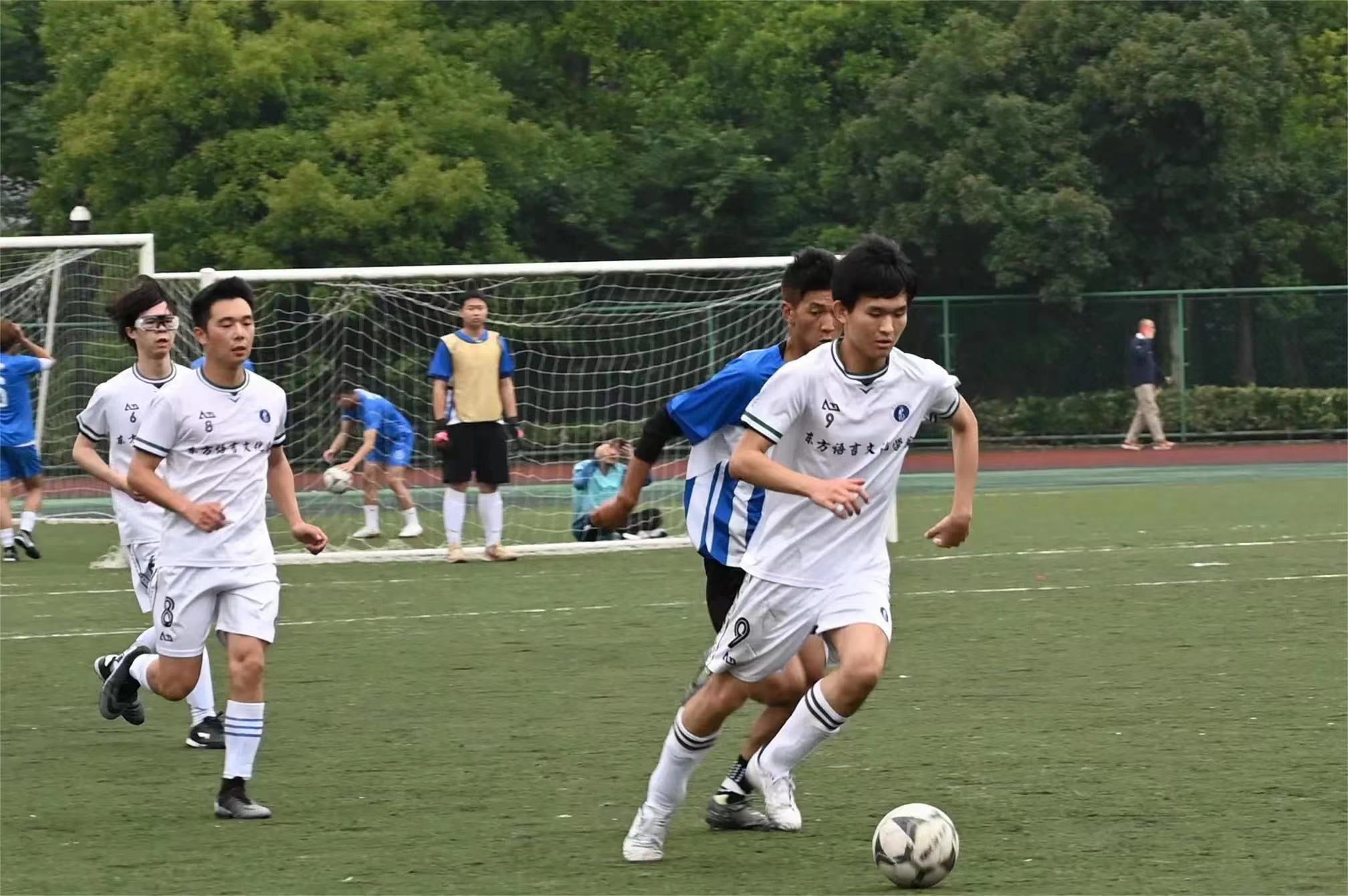 第三场比赛于4月29日下午举行,东语学院迎战强劲对手英文学院。队员们互相鼓舞、全力奋战,挥洒着青春的汗水,展现着拼搏的精神。比赛如火如荼,十分胶着。最终,两队以2:2打平。