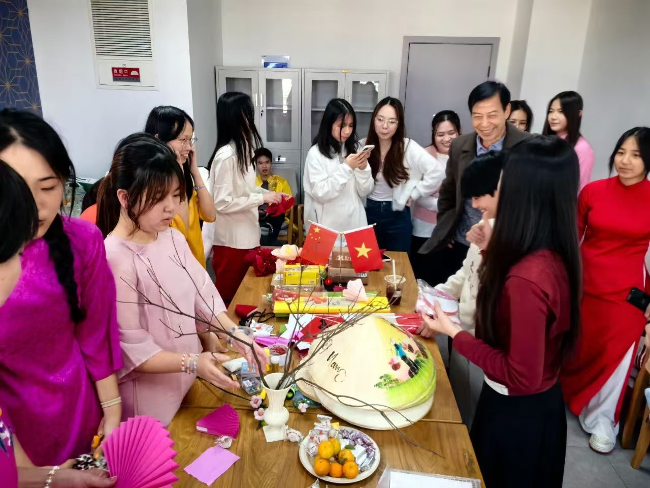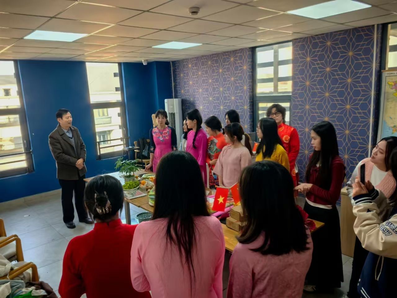 越南语班的授课教师王如芳老师谈到:“我认为这次活动最有意义的环节在于拉近学生与越南文化的距离。将越南的春节文化、传统服饰,以及越南人的生活风貌内容,在学生面前生动呈现,使他们更直观地了解越南文化。本次活动是一次非常宝贵的机会,为中越双方学生搭建了交流和互相了解的平台。学生们通过互动增进了对中越文化的认识,能加深对彼此国家传统春节的理解,还能建立友谊,共同度过一个充满意义的下午。