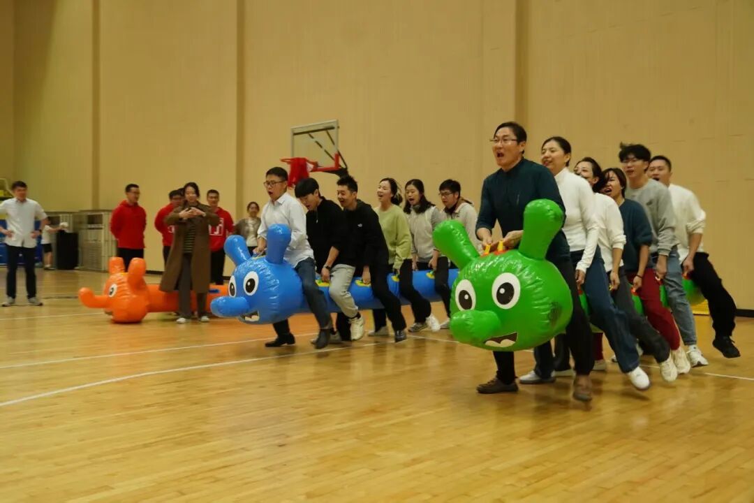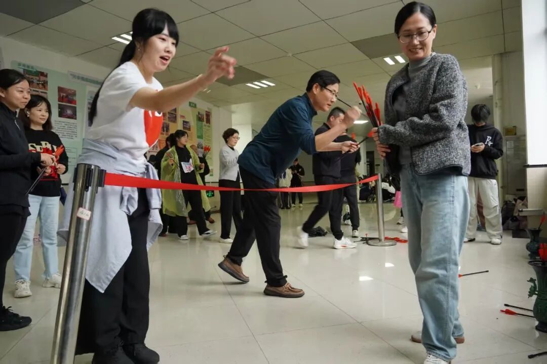 30日下午的行健馆内气氛热火朝天!教职工趣味运动项目精彩上演。毛毛虫竞速、同舟共济、同心鼓、夹气球折返跑接力和投壶团体赛相继展开,老师们全情投,默契配合与欢声笑语中,充分展现了课堂之外的活力与风采。