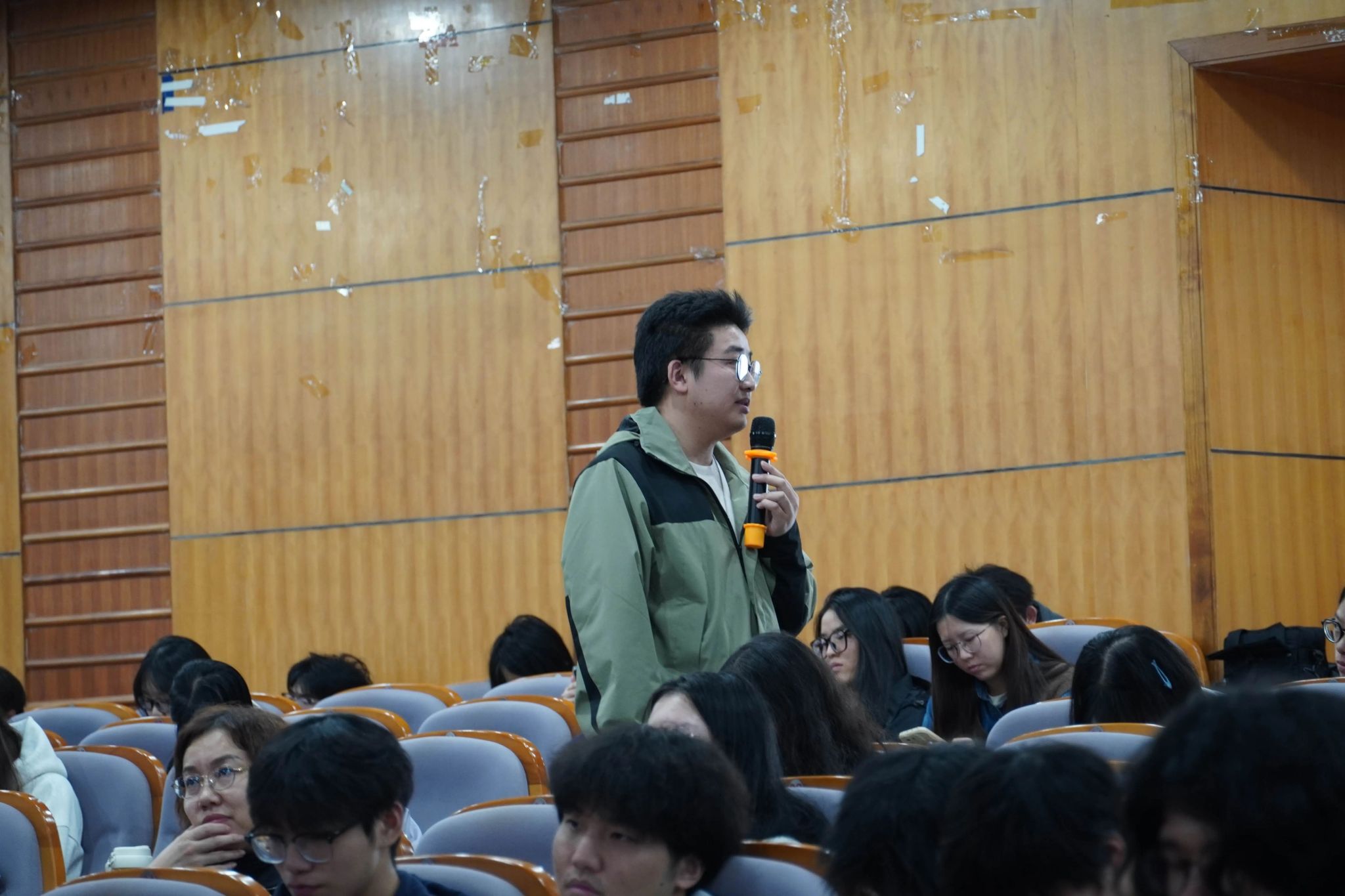 活动现场还设置了互动问答环节,同学们围绕学业规划、职业选择等困惑向校友提问,校友们毫无保留地分享求职技巧、工作心得与行业趋势,用亲身经历为学弟学妹答疑解惑、指引方向。