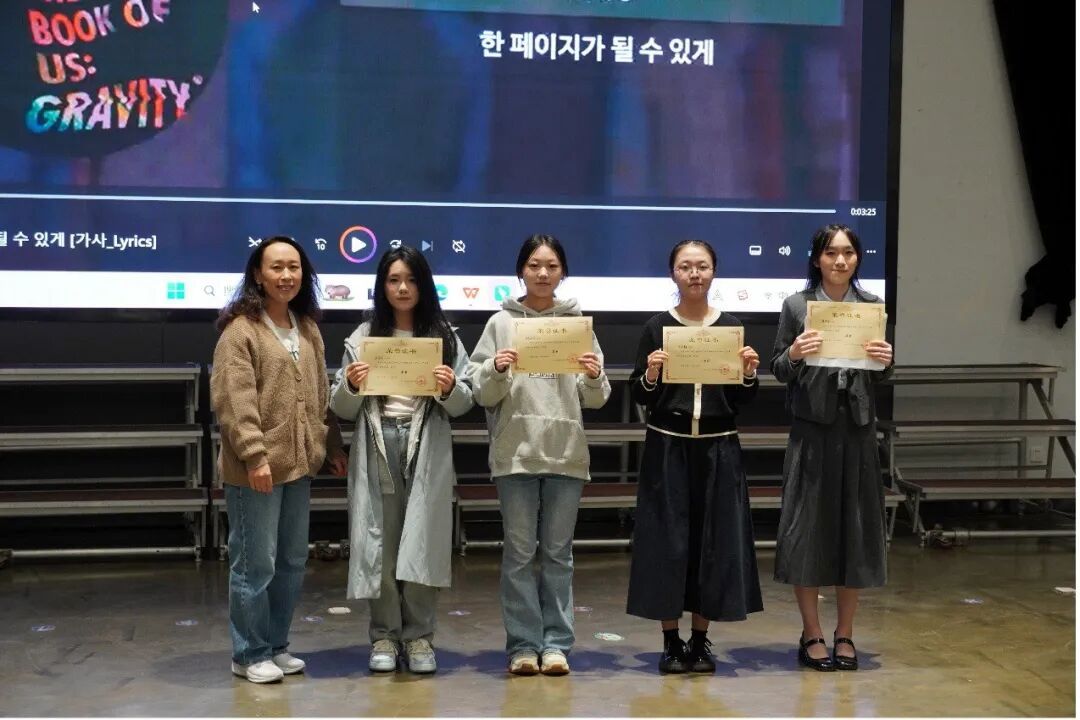 K-pop才艺大赛中,同学们通过音乐、舞蹈与器乐表演,展现了古典与现代的创意融合。节目涵盖DAY6合唱、《眼鼻嘴》《TOMBOY》等经典曲目,更有钢琴独奏与笛子演奏《阿里郎》等跨文化节目。金洙京老师的吉他弹唱与随机舞蹈环节将气氛推向高潮,体现出K-pop作为文化桥梁的包容性与创造力。