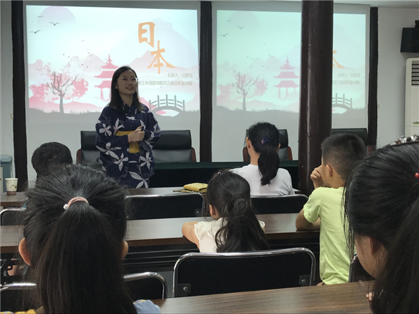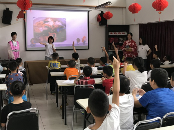 体验了韩国文化,日语系的吕梦洁、王小威、袁莹玉同学带着大家转场到了日本。从富士山到东京天空树再到东京铁塔,领略了日本风光;“おはよう”“ありがとう”“さようなら”,学习了简单的日语问候语;玩剑玉、着和服、享美食,体验了日本人文。一次次的课程加深了同学们对日本的了解,也让小朋友们学会了用更加客观的方式去了解一个国家。