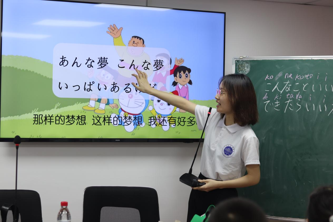 最后的文艺汇演,孩子们表演了日语歌曲《ドラえもんのうた》(日本动画《哆啦A梦》主题曲)、韩语歌曲《귀요미송》(《可爱颂》)和阿语舞蹈《نسيم》(《纳斯玛》),孩子们大声唱着歌,快乐地跳着舞,结束时还用外语说着“谢谢”来谢幕,国际文化传播的火炬代代相传,而我们则将这时代的接力棒交到了孩子们手中。
