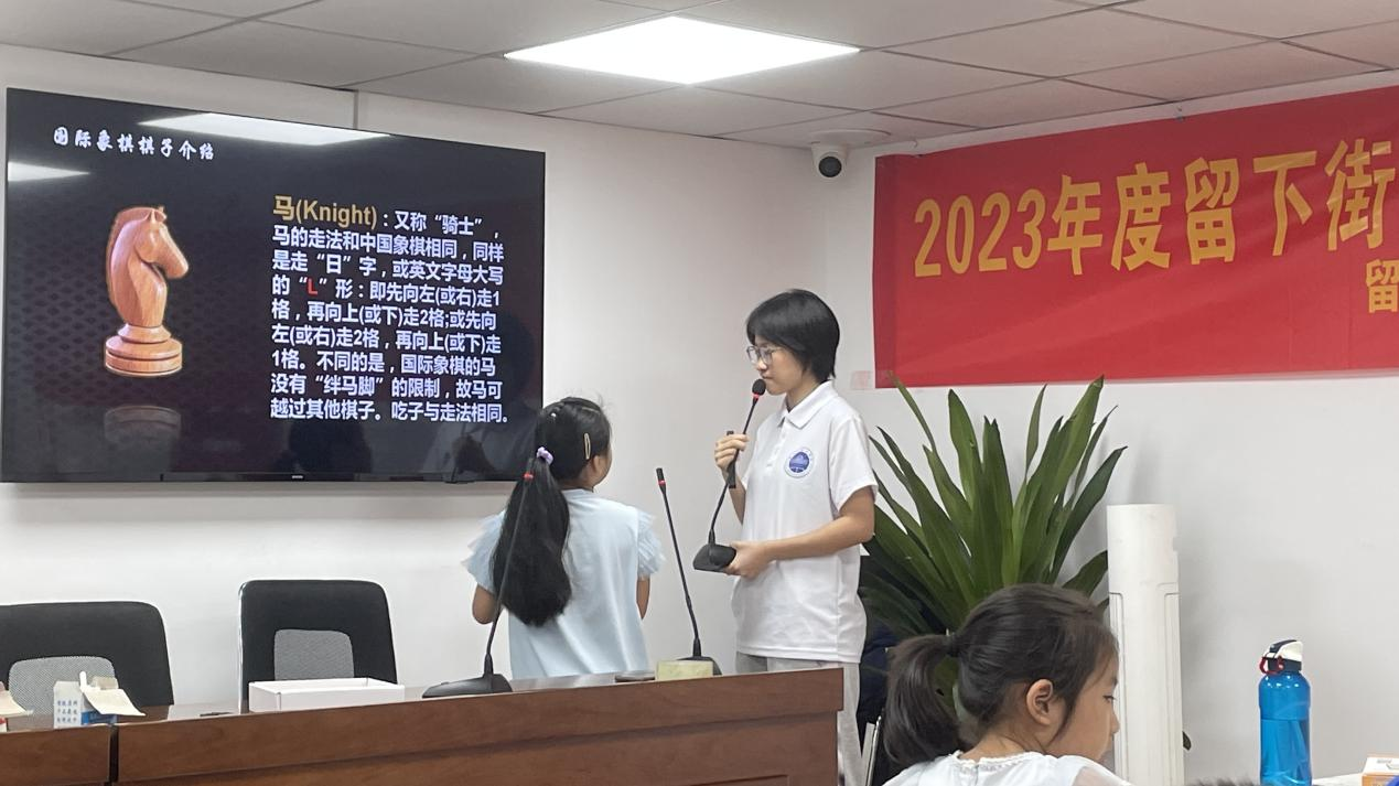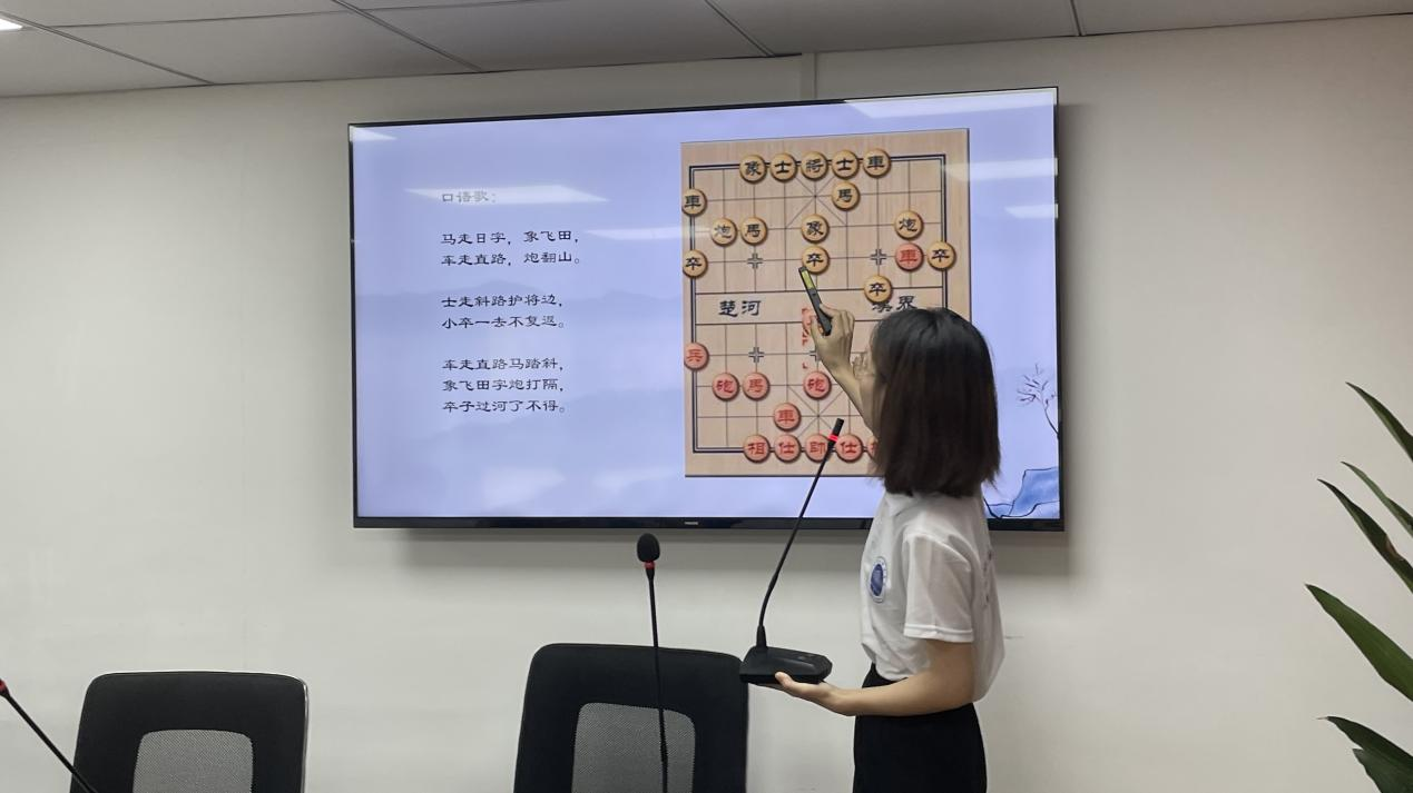 同时,队员们还就此次亚运会中包含的棋类比赛项目设计了三种棋类课程。立体棋子的神秘、楚河汉界的冲杀、黑白方寸间的较量,孩子们认真听着老师的讲解。