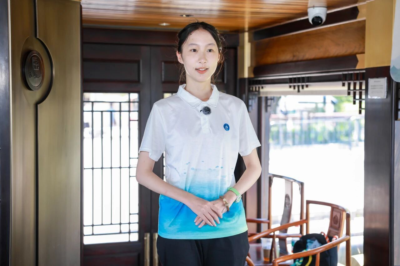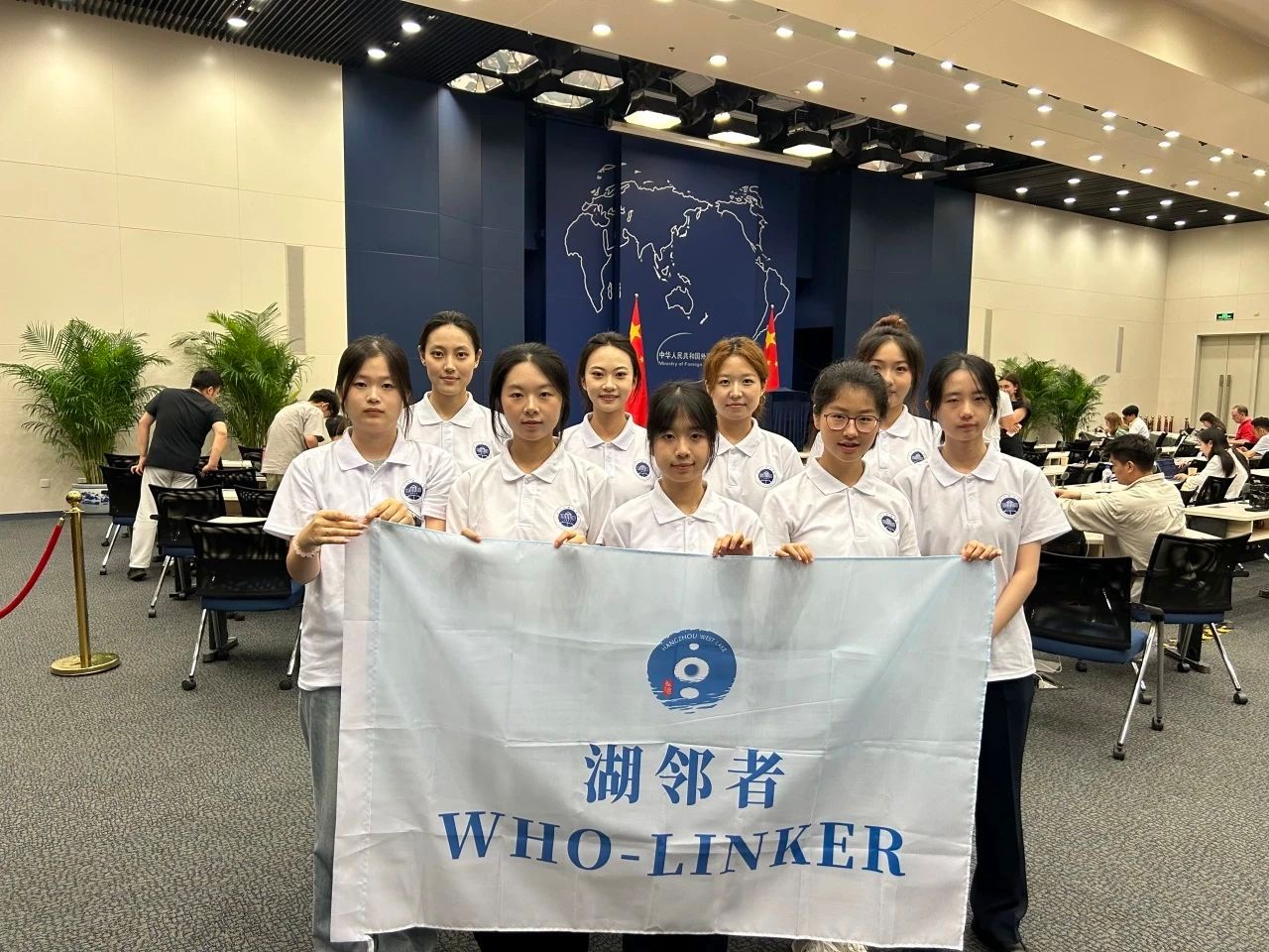 实践中,“湖邻者”们还赴京学习,在外交部、中国维和警察培训中心、东交民巷等地参观学习。在外交部新闻发布厅蓝厅,学员们旁听了外交部例行记者会。会后,阿拉伯语志愿者关斯予在蓝厅拍了张“人生高光照”。她瞅着身上“湖邻者”白底蓝字的队服,嘿,跟蓝厅背景居然是天生一对!“现在我能拍着胸脯跟外宾说:咱西湖啊,可是见证过超多外交名场面的!”