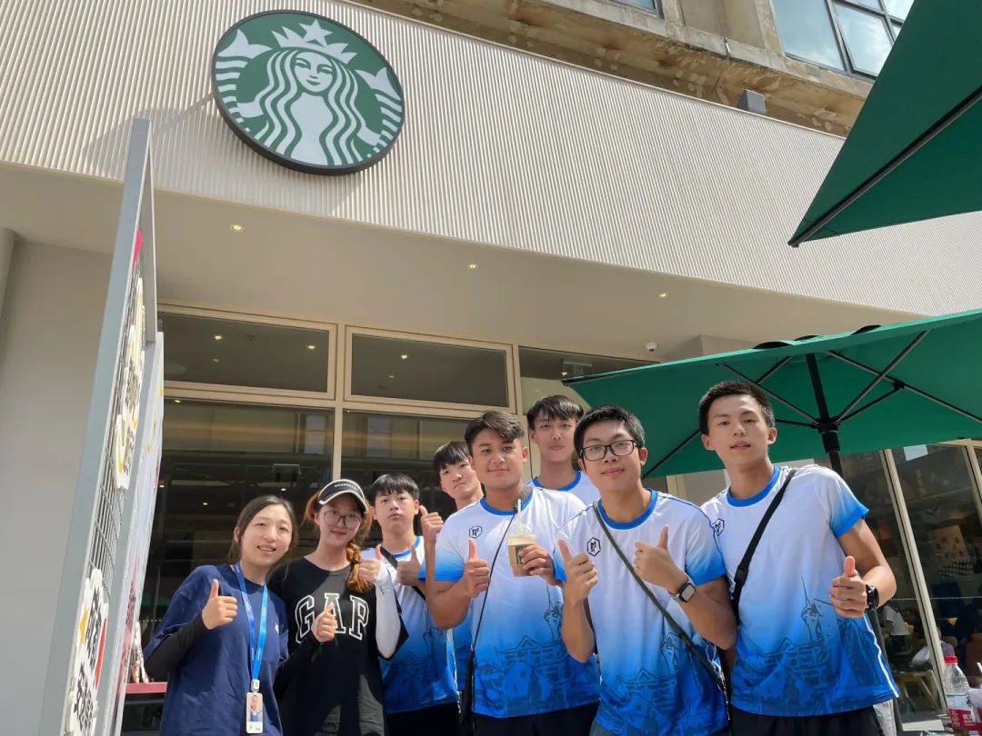 胡司佳(左二)在东郊记忆与来观看大运会比赛的中国香港中学生合影留念