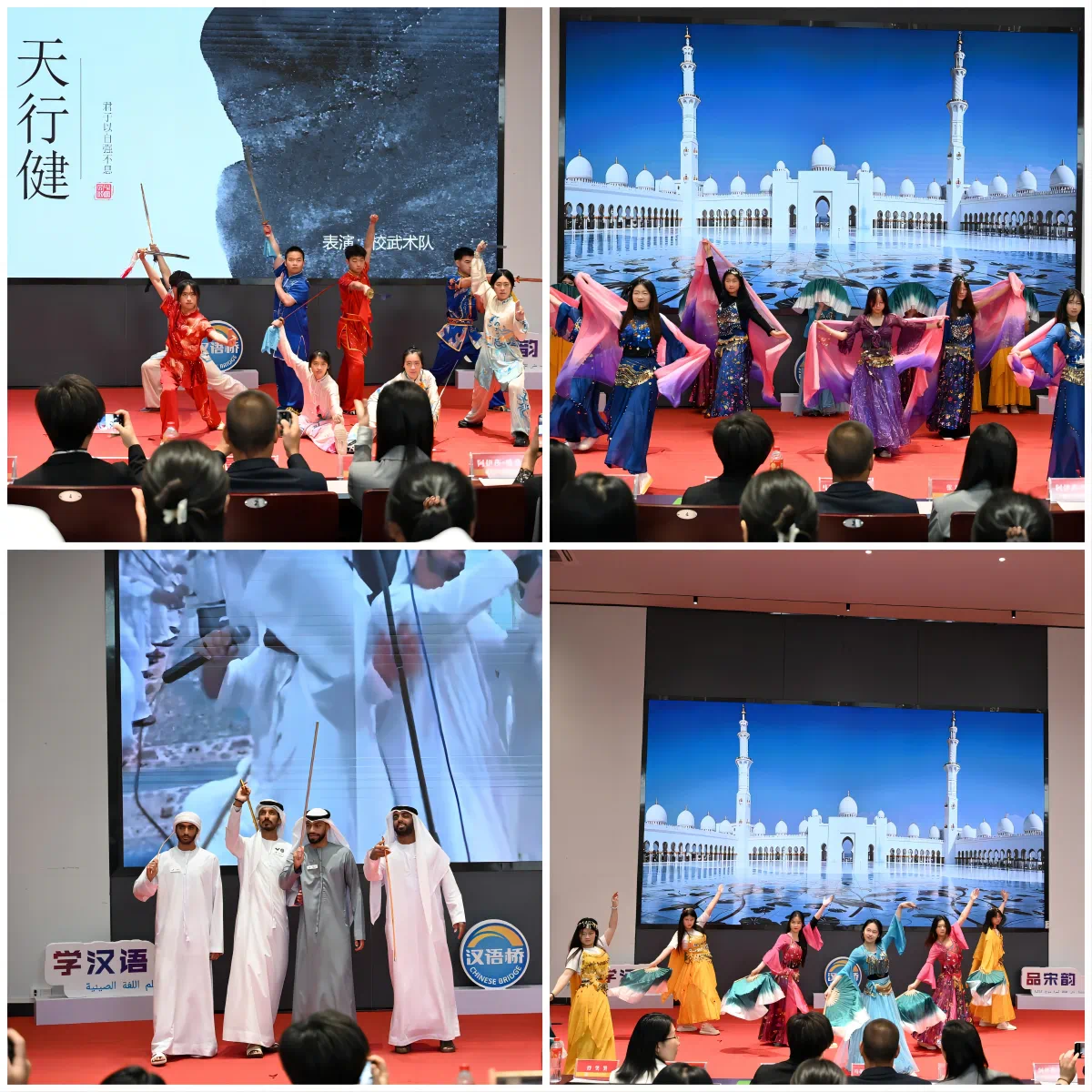 活动期间,肉漫屋 武术队、羚羊阿语社和阿联酋学生“汉语桥”团组分别带来了民族传统体育展示、舞蹈《哈吉娜》表演和《迪拜阿亚拉舞》表演等精彩节目。阿联酋“汉语桥”团组全体营员还参与了中国结编制、折扇书法、画脸谱等中国传统文化体验活动。