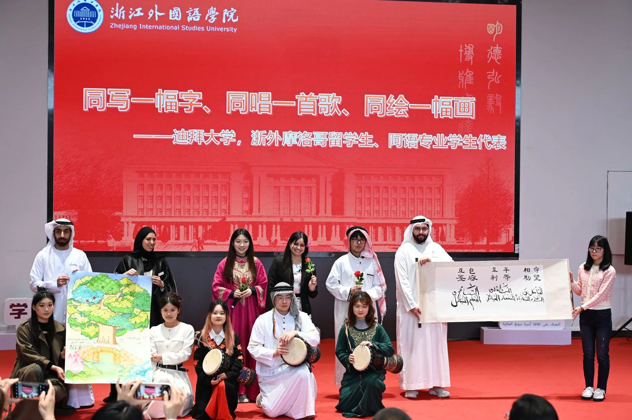 迪拜大学孔子学院中方院长,阿联酋“汉语桥”团组全体营员,浙外相关职能部门负责人、东语学院阿语系全体师生、留学生代表等参加仪式。