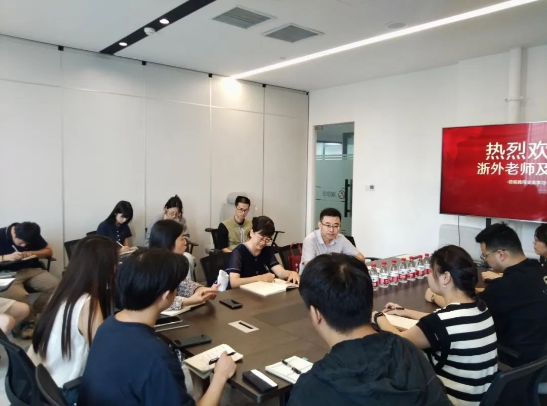 一行与在公司就职的校友座谈,20届校友周雪莲、伍江丽、21届校友卞李琴、23届校友陈宇聪、24届校友薛叶阳,以及肉漫屋