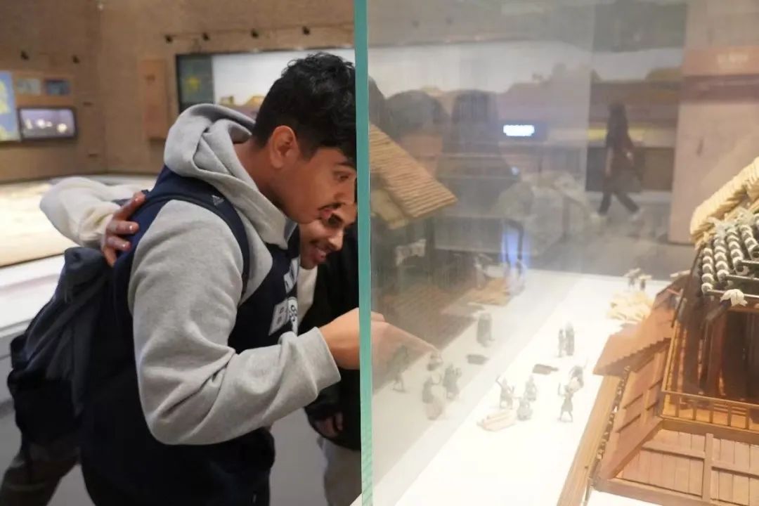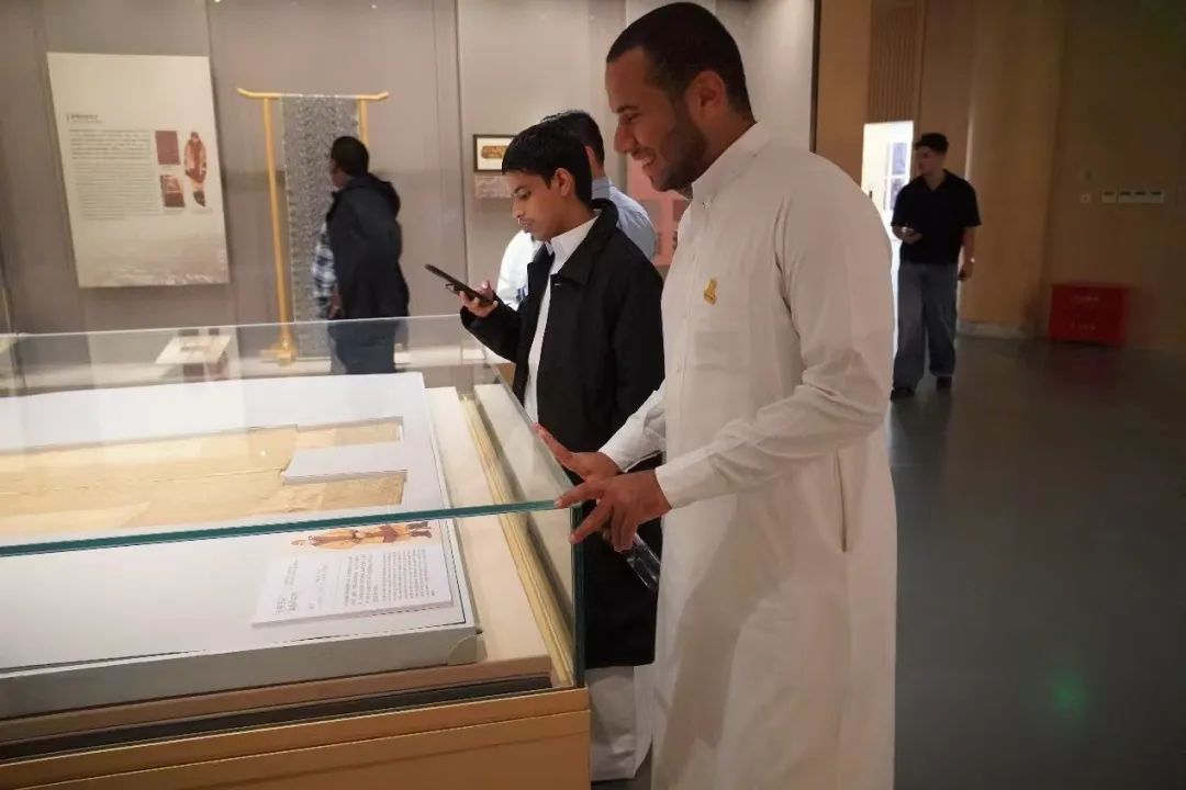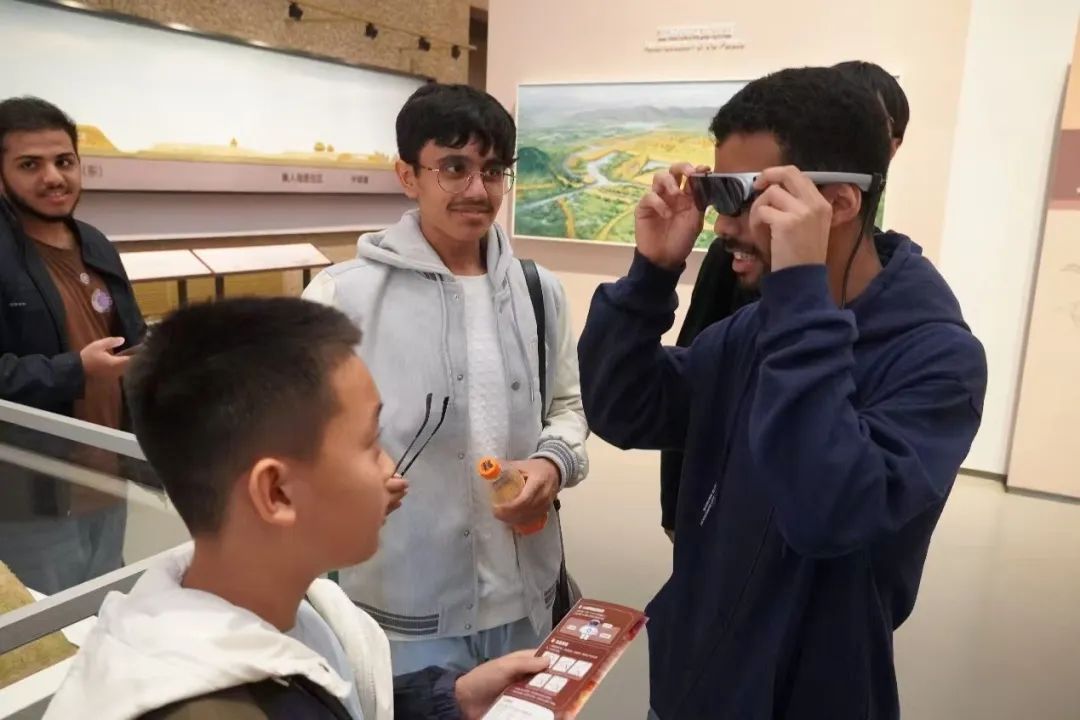 “穿越时空隧道,探寻五千年文明印记”。14日下午,营员们出发前往良渚博物院和良渚古城遗址公园。来自良渚的VR眼镜体验让营员们能更生动地看到中国悠久的灿烂文明。“我看到了像城墙的建筑,眼镜里的良渚真美!”学生FAISAL(费萨尔)戴着眼镜兴奋的对身边朋友说。5000年前的中国古代文明遗迹呈现在眼前,每个人都在丰富的展品和生动的多媒体展示前流连,营员们还在讨论中对比了中沙的建筑风格。“这些古代的东西我们也有,但是不一样,你们的真的很漂亮!”NAWAF(纳瓦夫)用一口流利的中文说道。这种交流不仅深化了他们对中华文化的理解,也让中国青年更好地理解了阿拉伯文化的丰富性。