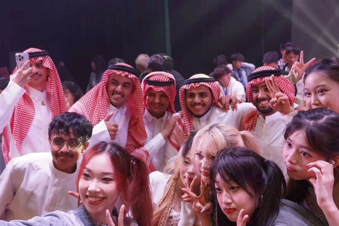 13日傍晚时分,东语学生和营员们也都在“摩拳擦掌”,跃跃欲试,准备在东语学院2024级迎新晚会上大展拳脚。沙特学生们在欣赏了来自东语学院新老生带来的表演之后,还作为神秘嘉宾带来了阿拉伯舞蹈,赢得了现场观众的阵阵掌声。迎新晚会结束后,营员们还争着与演职人员合影留念。