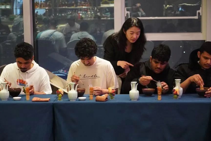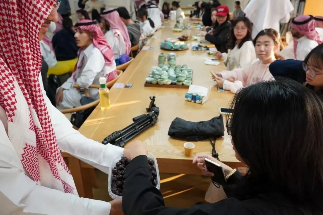 “茶香袅袅,情意绵绵。”11月15日下午,营员们一起参加了一场精彩的中国传统茶艺表演。他们在专业茶艺师的指导下学习宋韵点茶技艺,并品味了传统龙团凤茶的悠扬。“茶蕊轻盈如涟漪,茶汤澄澈如清泉”在最后的点茶环节所有的沙特学生都全神贯注,再亲手点上字,他们脸上的笑容显露出了成功后的喜悦与自豪。