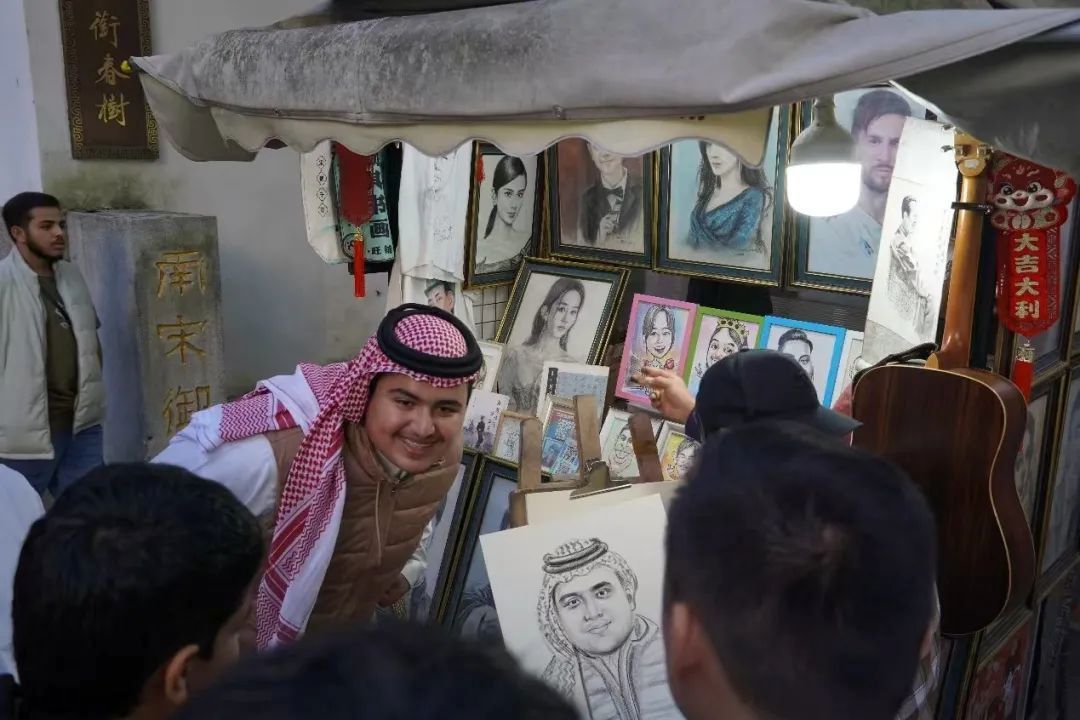 “流水绕古街,小桥连老铺,清池围旧宅。”12日午饭后,营员们漫步在南宋御街上,青石板路沉静的气息和古朴的质感,让他们流连忘返,纷纷举起手机拍街道、拍风景、拍人文,久久不能放下。拿起传统折扇仔细欣赏以及来自中国的画像体验让他们对杭州这个城市更加喜爱。“我为杭州的美丽感到非常惊奇,因为在沙特我从来没有见到过这么多漂亮的树。”沙特学生Turki(甘宁)说道。