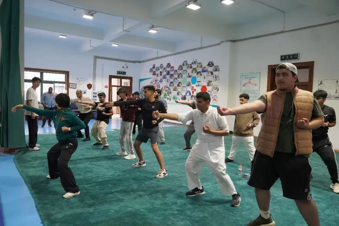 11月13日,沙特学生们在学校行健馆与浙外学生一起学习了中国传统武术八段锦、太极拳以及舞龙舞狮表演。“强身健体,而非争斗”的中国武术的理念让沙特学生们进一步感受到了传统武术的精髓和韵味,舞龙舞狮的视觉盛宴也让现场充满欢乐,中国传统文化的魅力令营员们沉浸其中。“这些动作有点复杂, 但感觉非常有趣。”ABDULLA(阿布杜拉)笑着对同伴说。穆罕默德笑着回应:“我现在很想学习中国的武术。这不仅是一次简单的文化交流,更是中沙青年友谊的升华。”