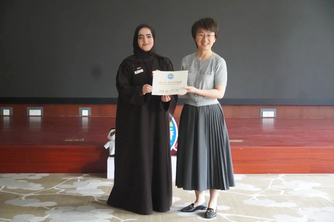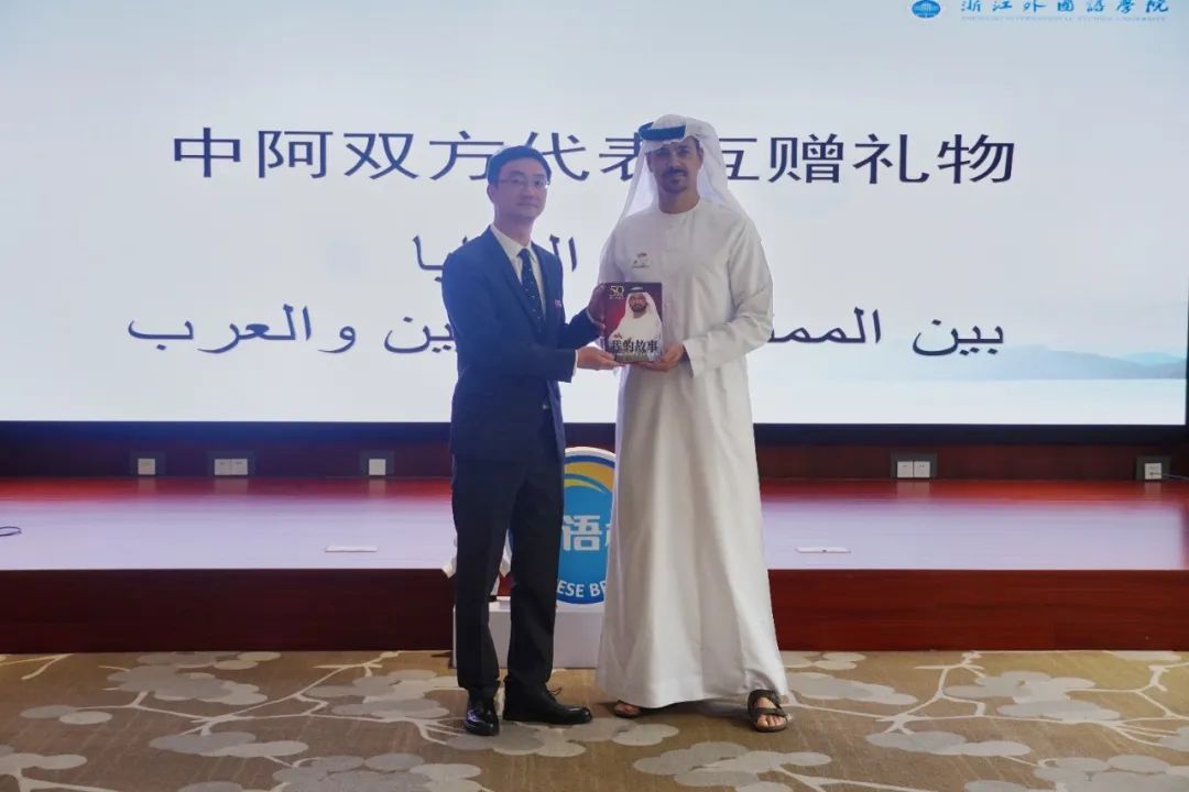 仪式最后,姚旻与马蒂亚斯·勒特梅代表双方互赠礼物。学校阿拉伯研究中心相关负责人还通过团组向迪拜大学赠送研究中心参与浙江省学术精品外译项目所编纂的阿语版图书《图说浙江茶文化》《浙江博物馆藏一万年》。至此,为期近两周的阿联酋学生“汉语桥”春令营顺利结营。