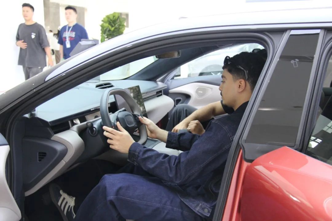 步入展厅,极氪、几何等新能源车型整齐陈列,瞬间抓住了营员们的目光。营员穆罕默德(Mohammad)轻轻抚摸着车的门把手,难掩惊叹:“这辆车的设计太有未来感了,车门开合轻松,整车质感更是没得说!”