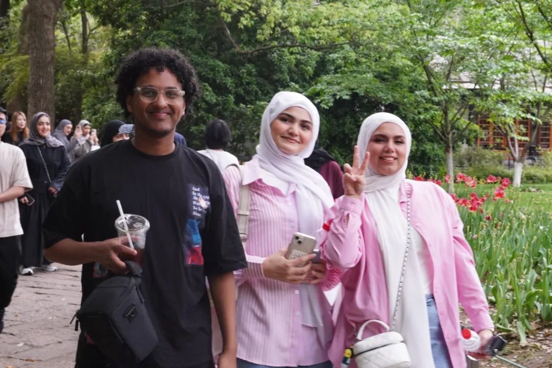 碧水映花海,古塔揽湖光。11号下午,营员们来到西湖畔的太子湾公园。樱花与郁金香竞相绽放,湖水映着远处的山峦,宛如一幅水墨画,引得众人惊叹连连。阿联酋学生纷纷驻足拍照,记录下这“人间天堂”的灵动之美。营员希巴(Hiba)说到:“我早就想来游览这个公园,我从未见过湖水能清得如此透亮。杭州太子湾真的很漂亮!”