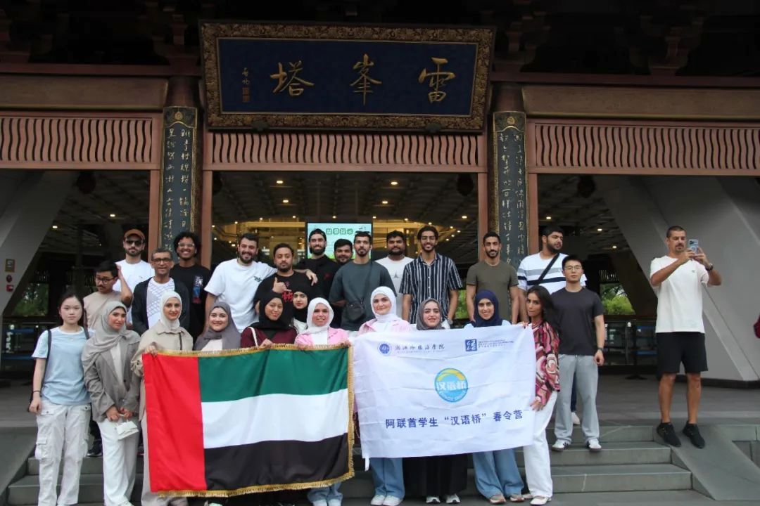 承办,教育部中外语言交流合作中心立项并资助的阿联酋学生“汉语桥”春令营如约举行。来自阿联酋迪拜大学的32名师生通过“汉语桥”跨越山海,将在14天里完成一场在中国的奇妙之旅。本项目一方面积极响应落实习近平总书记2022年在首届中国--阿拉伯国家合作委员会峰会上的重要讲话精神,搭建阿联酋学生进一步提高中文水平、了解“宋韵文化”等中国优秀传统文化的学习交流平台;另一方面积极发挥学校“中阿高校10+10合作计划”“青年成长”领域中方成员高校的作用,通过“汉语桥”增进阿联酋人民和中国人民的美好情谊,展示日新月异的中国速度。学院特推出系列报道,记录中阿青年在同行中遇见更好自己的精彩瞬间。