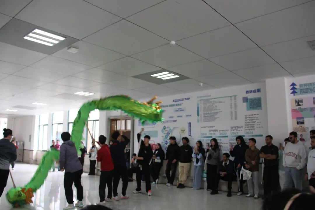 12号下午,行健馆外的雨丝轻叩屋檐,馆内却涌动着蓬勃的热潮。当锣鼓声骤然响起,彩龙金狮在馆内翻腾跳跃,点燃了全场热情。营员们都沉浸在校舞龙舞狮队精彩绝伦的表演中。迪拜大学学生萨拉(Sara)摸着舞狮头饰感慨:“这些文化符号背后藏着深厚的历史,我想把它们的故事带回迪拜。”