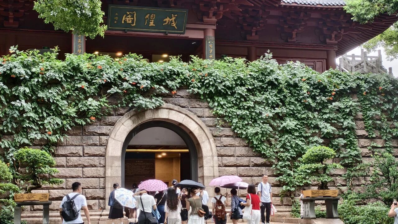 7月25日傍晚,城隍阁上,越南学生惊叹于建筑的精巧斗拱。登顶俯瞰,杭州城万家灯火尽收眼底,Khuong Minh Ngoc(姜明玉)举着手机拍摄:“这个视角太神奇了,像把杭州的历史与现代都装进了相框。”