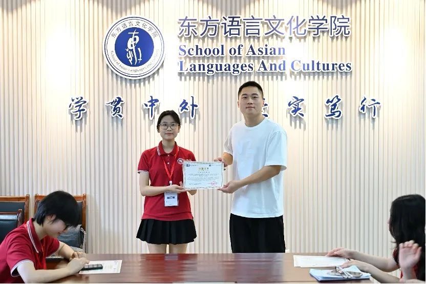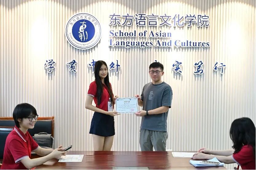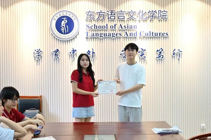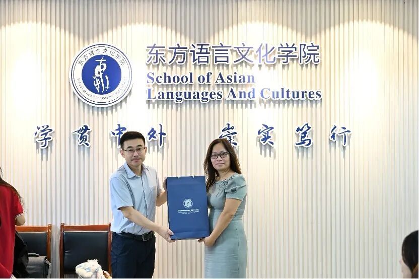 随后,宋洋为Nguyen Le Quynh Hoa(阮黎琼花)赠送东语学院精心准备的礼物,表达最真挚的祝福。