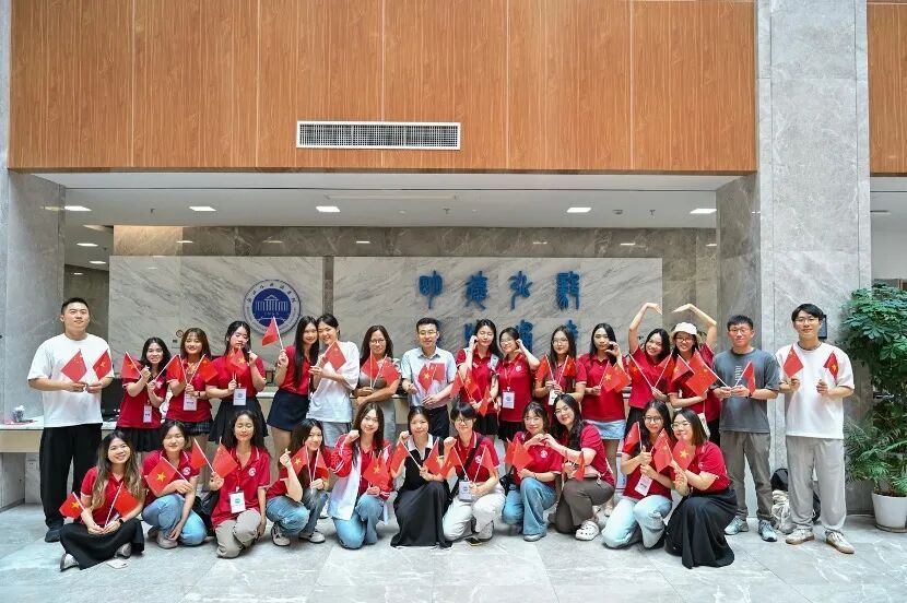 最后,全体嘉宾和营员们在弘文馆大厅合影留念,定格这美好的瞬间。场馆内,中越青年肩并肩,笑容灿烂——这张合影不仅记录此刻,更象征“友谊之树茁壮成长”。
