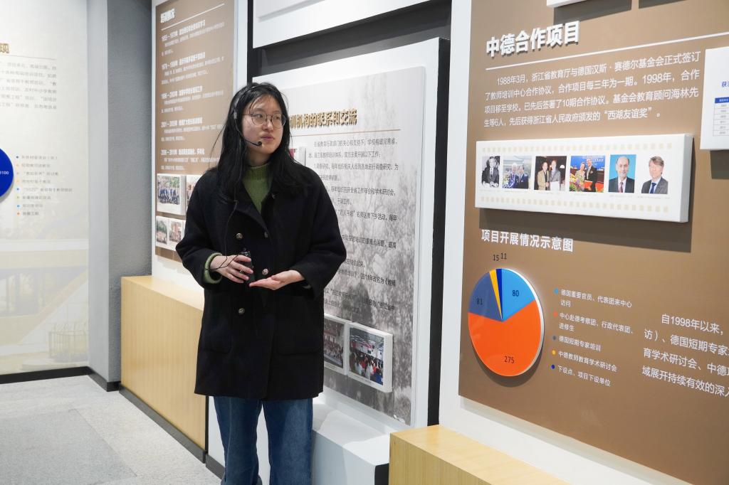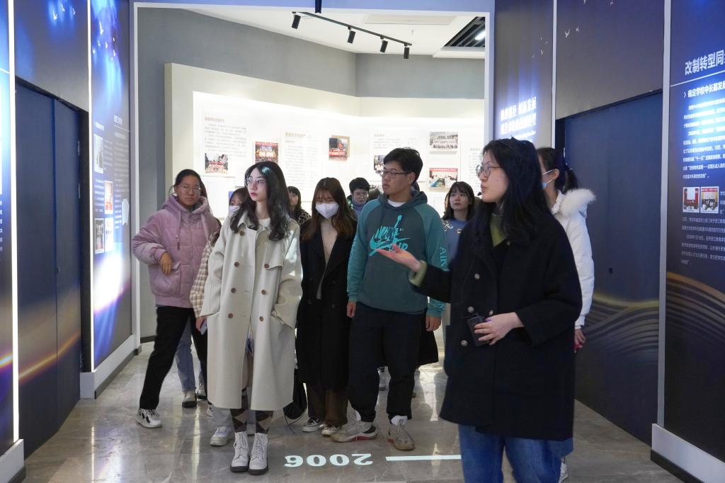 学校的科研成果、荣誉奖项、名师教授等一切记录着学校进步与发展的成果都陈列在校史馆这一方空间里,这些陈设见证了浙外的成长,饱含深情地将浙外历史向同学们娓娓道来。跟随着引导员的脚步,同学们了解了学校发展的脉络,感受到学校独特的文化底蕴,聆听到杰出校友的事迹,畅游校史、展望未来。