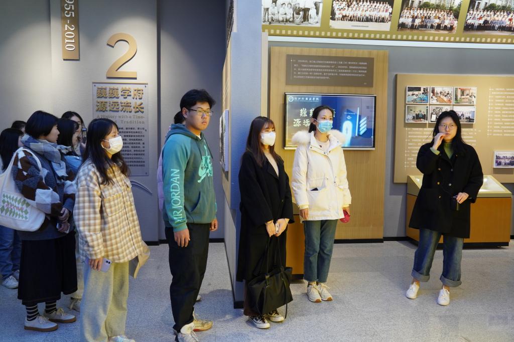 12月2日,东语学院组织入党积极分子到学校校史馆参观学习,回顾浙外的发展历程,体会“明德弘毅,博雅通达”校训精神的内涵。