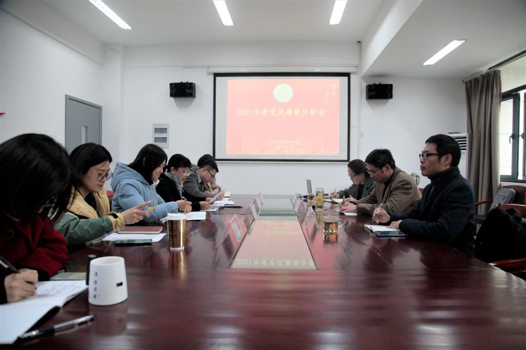 会上,党总支书记夏颐汇报了2021年学院党总支落实全面从严治党主体责任和党风廉政建设情况。班子成员结合分管工作,汇报了“一岗双责”履行情况,对廉政风险排查发现的管理运行中的薄弱环节进行分析和研判,并有针对性提出防控举措。