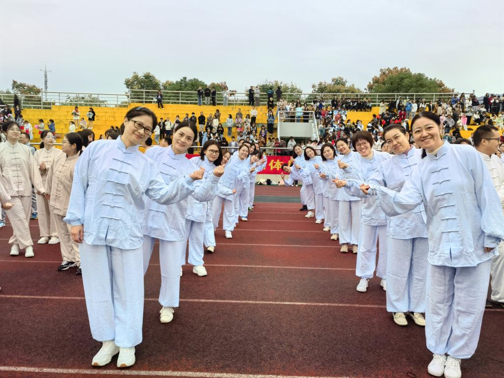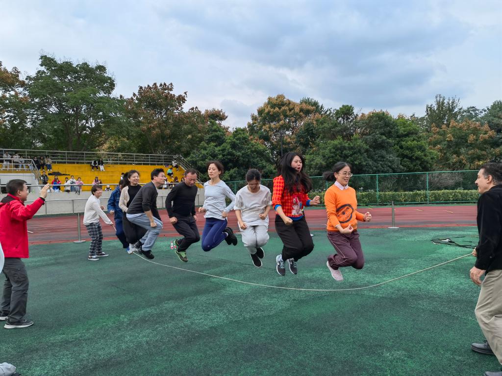 教职工在集体八段锦项目中荣获第一名,在趣味类项目中集体跳长绳荣获第一名、同心鼓荣获第一名、毛毛虫竞速荣获第六名;个人项目中田鸿儒老师分别获得教工青年组女子100米和800米第一名,宋洋老师获得教工青年组男子跳远第六名。