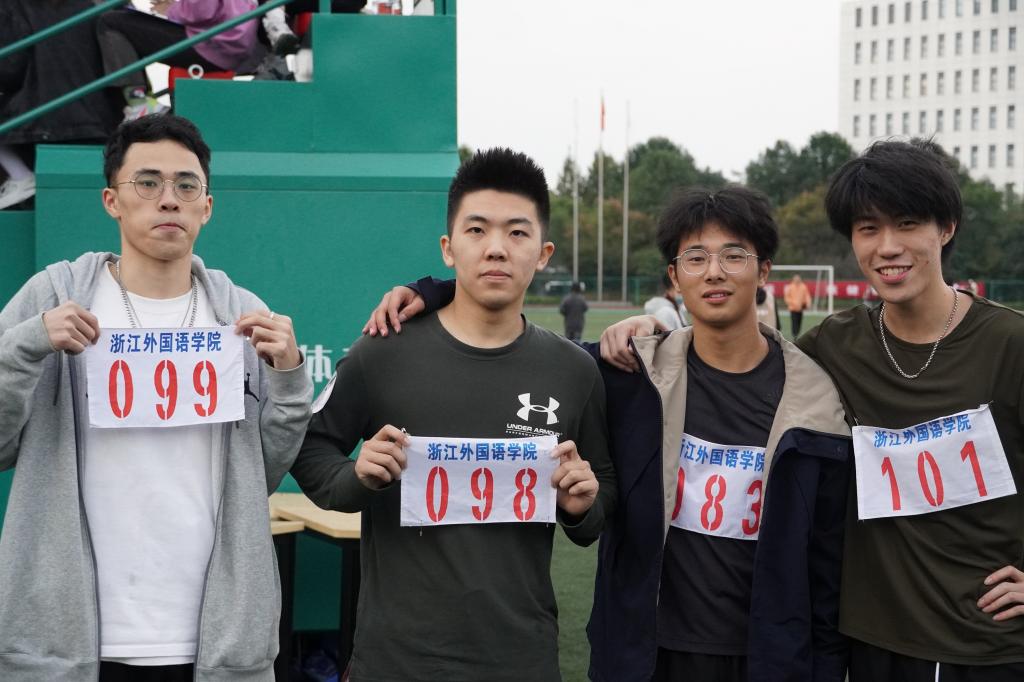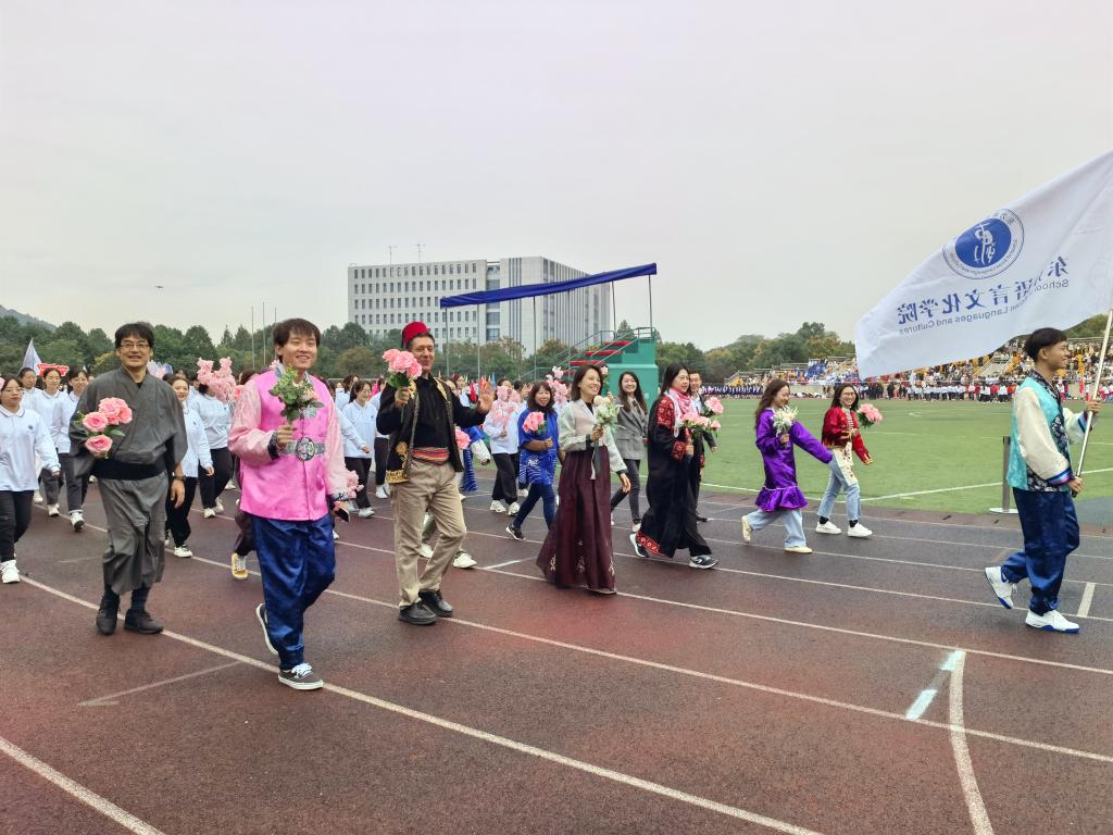 学生团体项目中,东语学院入场式荣获第四名,健美操荣获第五名,太极拳荣获第四名,男子4×100中荣获第六名,男子4×400中荣获第八名,女子4×100荣获第七名,女子4×400荣获第六名。