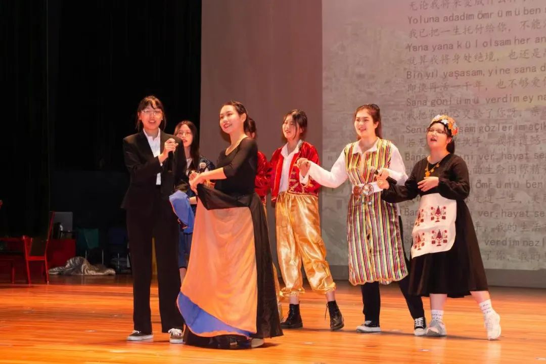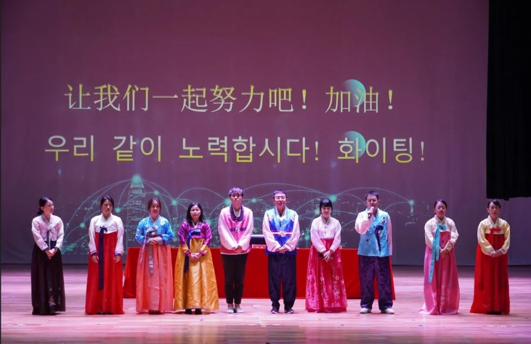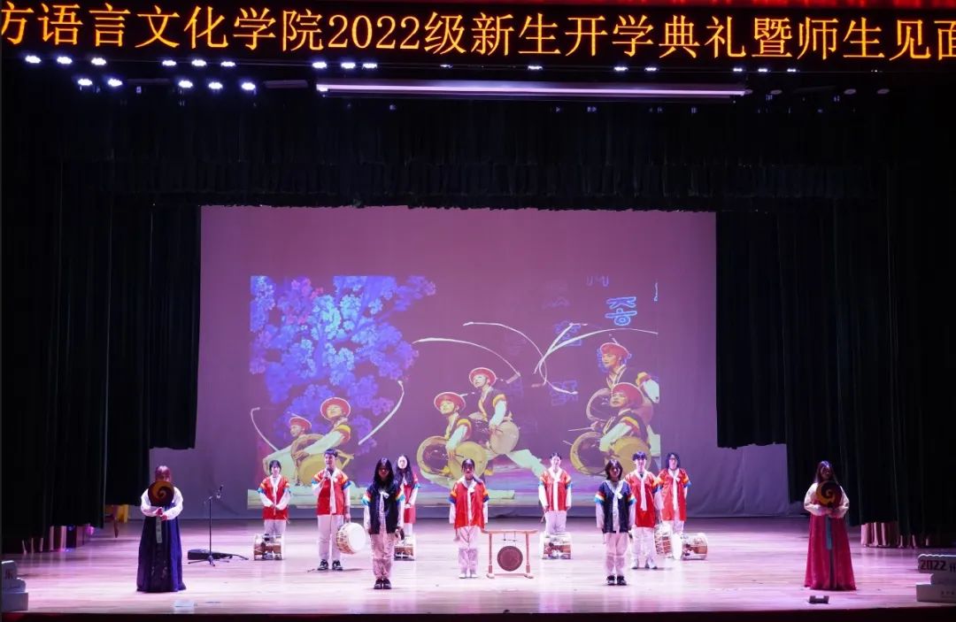 典礼开始前的暖场环节,东语学院四个专业的学长学姐们为新生带来了精心准备、极具特色的文化展示。
