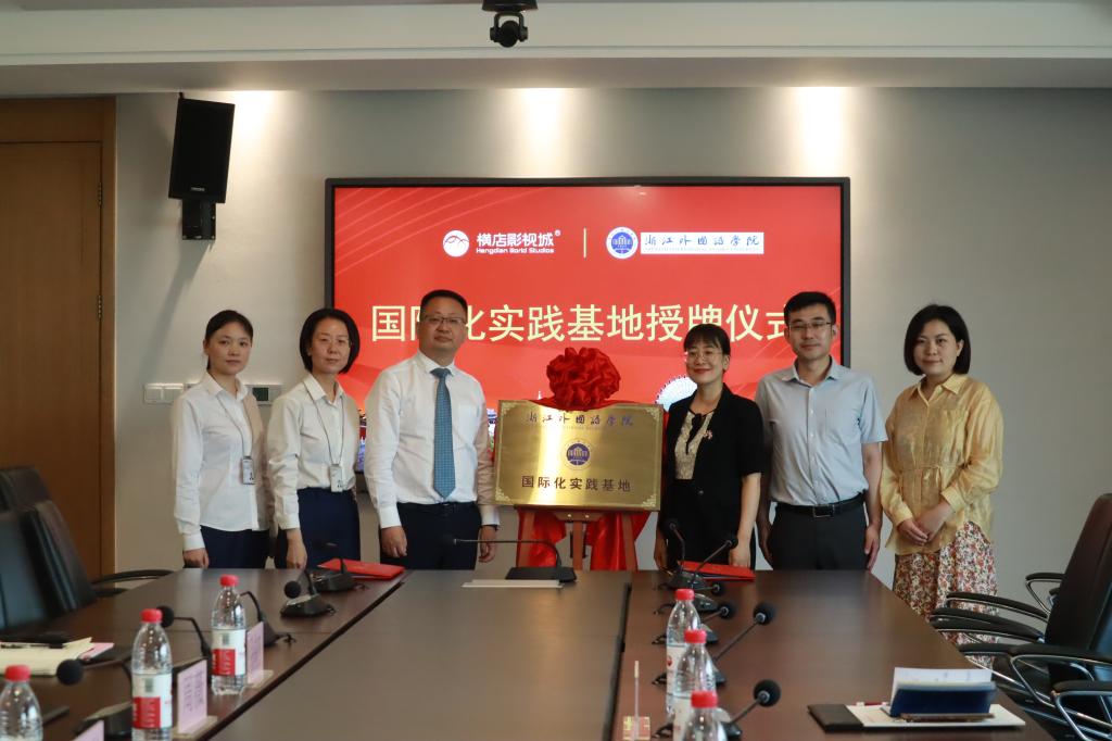 最后,夏颐代表学校与横店影视城教育科技有限公司签订了《关于合作建立肉漫屋 国际化实践基地的协议》,并赠予《肉漫屋 国际化实践基地》铜牌。