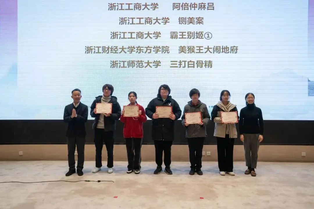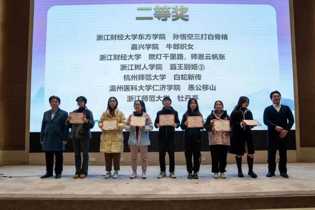 《西游降魔前传》《女驸马》《我们结婚吧》等3支队伍荣获特等奖;浙江工商大学《阿倍仲麻吕》《铡美案》《霸王别姬》、浙江财经大学东方学院《美猴王大闹地府》以及浙江师范大学《三打白骨精》等5支队伍荣获一等奖;浙江财经大学东方学院《孙悟空三打白骨精》、嘉兴学院《牛郎织女》、浙江财经大学《燃灯千里路,师恩云帆张》、浙江树人学院《霸王别姬》、杭州师范大学《白蛇新传》、温州医科大学仁济学院《愚公移山》以及浙江师范大学《牡丹亭》等7支队伍荣获二等奖;温州医科大学仁济学院《屈原(新编)》等8支队伍荣获三等奖;杭州电子科技大学《让子弹飞》等14支队伍荣获优胜奖。