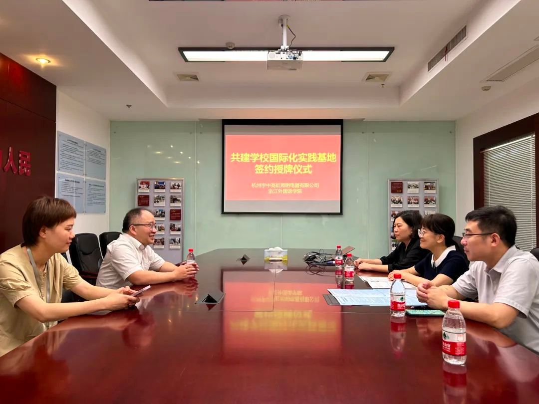 党总支书记夏颐一行4人赴杭州宇中高虹照明电器有限公司调研交流并合作建立学校国际化实践基地。