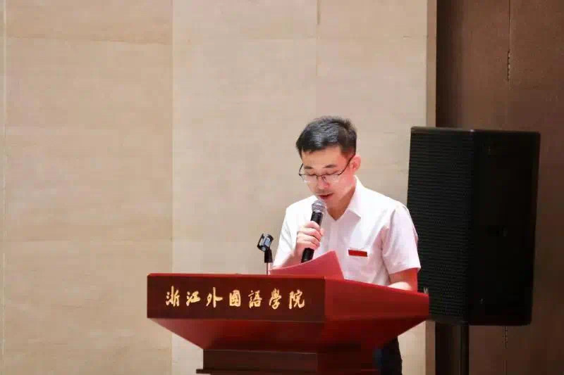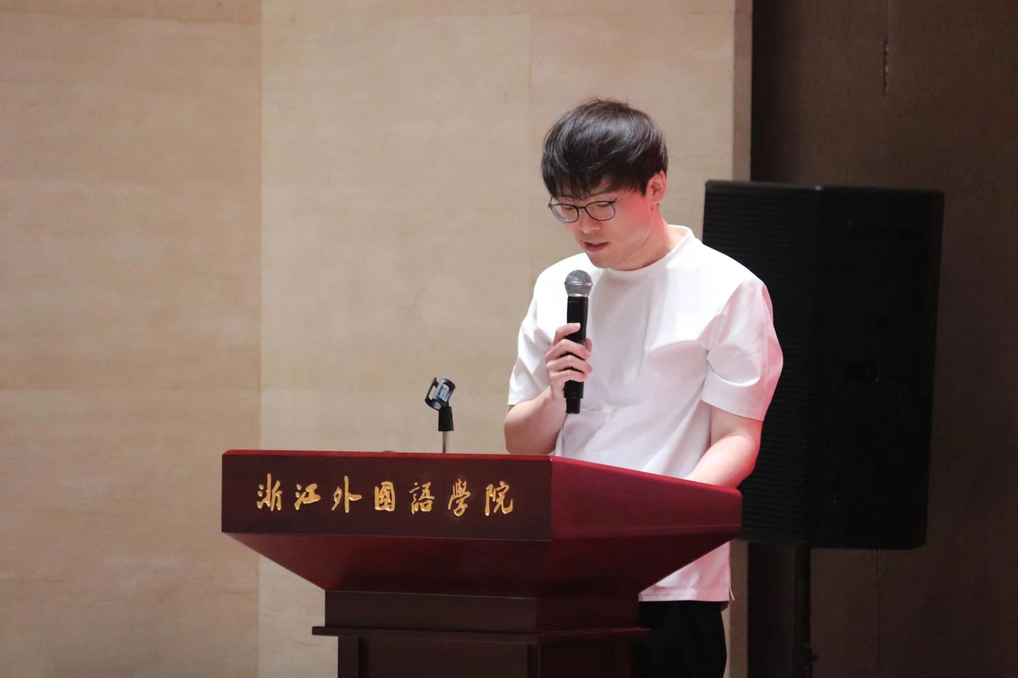 教师代表、“我最喜爱的老师”获得者朝鲜语系孙霁老师发言。他在这临别之际向同学们分享了他的人生经验,希望同学们无论遇到什么困难和挑战,都要相信自己的能力和潜力,勇敢地面对未来的挑战和机遇。