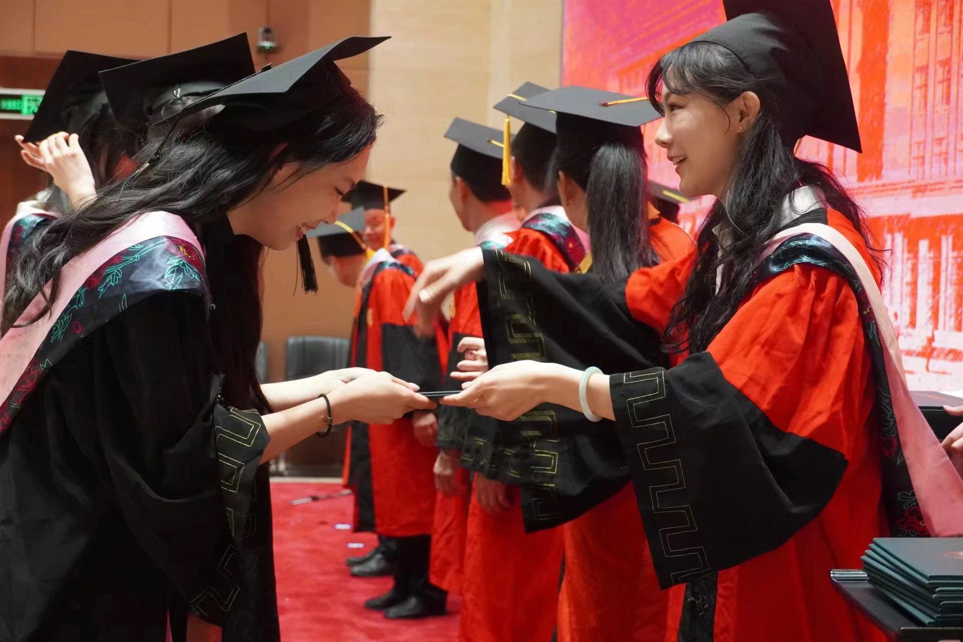 最后的学位授予仪式,曹笑笑教授、周烈教授、马晓霖教授、沈志兴教授、金海救教授、滕小春教授、孙瑱教授、郭筠教授等为毕业生们逐一拨穗、颁授学位证书。